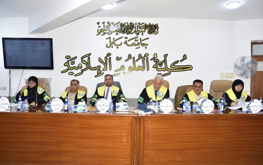 جرت المناقشة العلنية لطالبة الدكتوراه تبارك فؤاد مرزوك حول أطروحتها الموسومة **"الرؤية القرآنية في الفصل بين السلطات الرقابية - دراسة موضوعية"**، على قاعة الفرقان بمبنى عمادة الكلية.