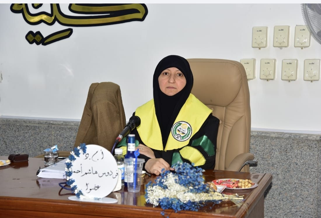 تبارك الكلية للباحثة ولمشرفها وذويها ولأعضاء لجنة المناقشة هذا الإنجاز العلمي المميز.