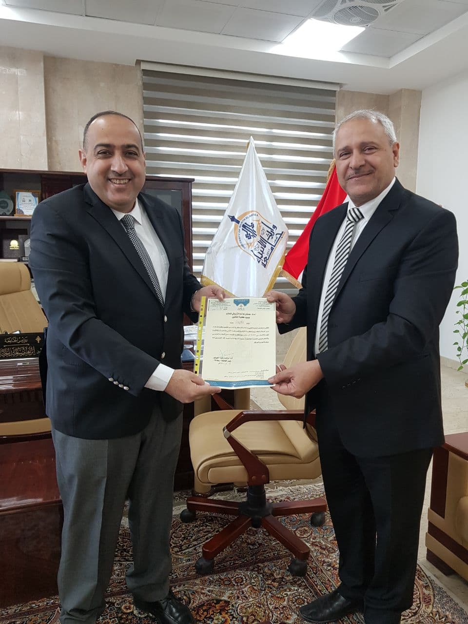 عمادة كلية القانون تكرم المدرس الدكتو ستار جبار زاير بمناسبة حصوله على شهادة الدكتوراه في القانون المدني بدرجة جيد جدا متمنين له مزيد من التالق والابداع العلمي