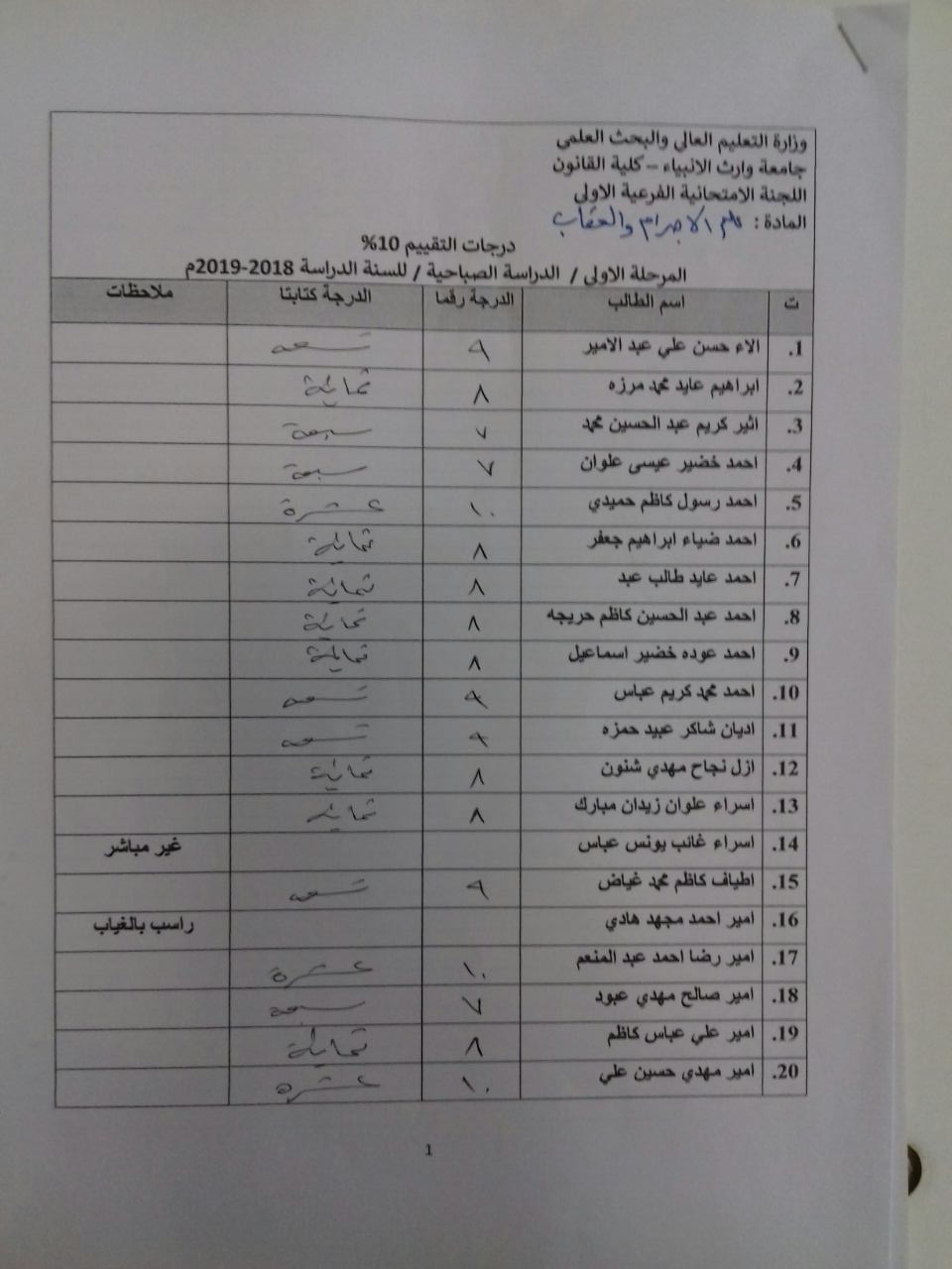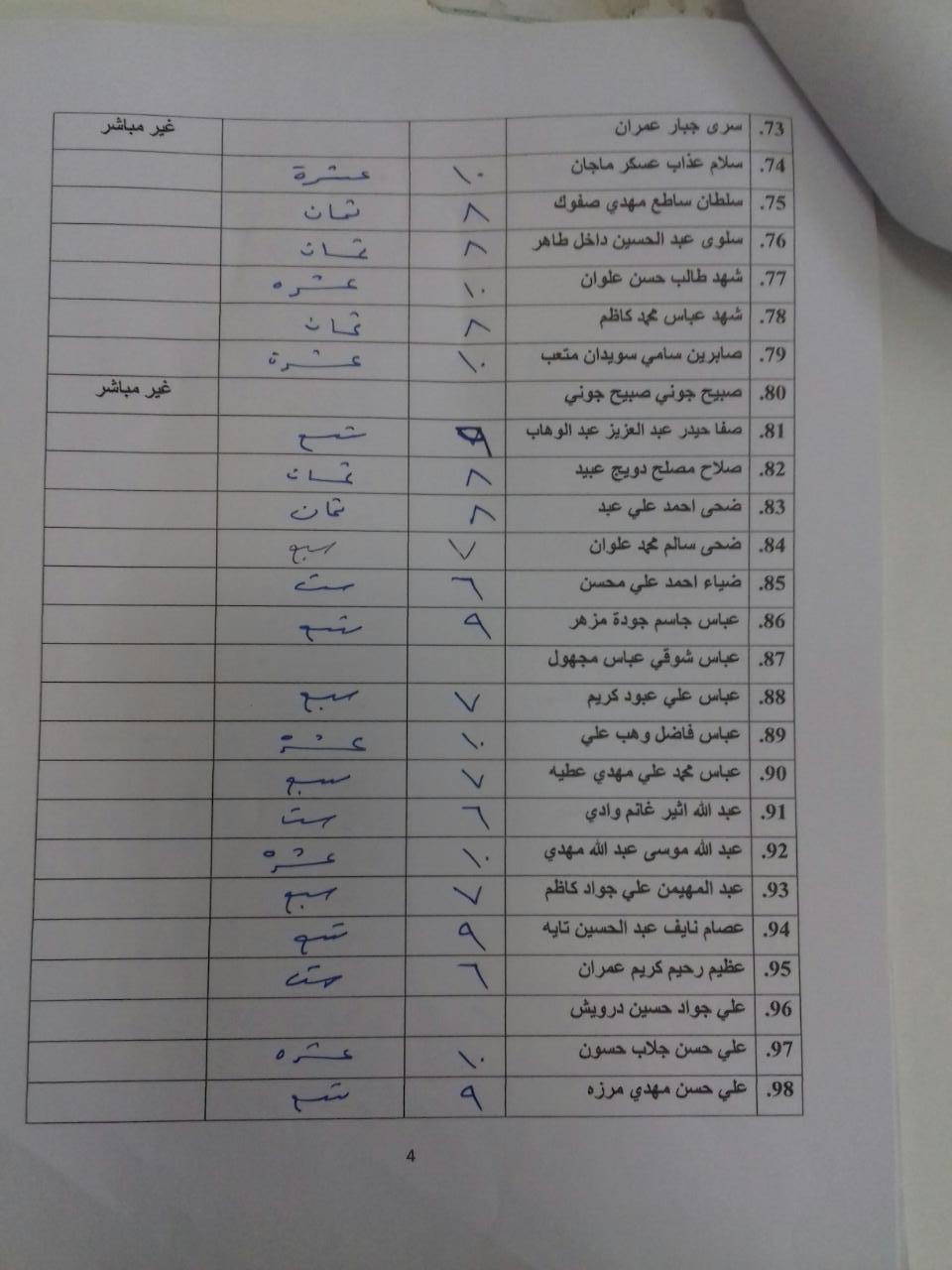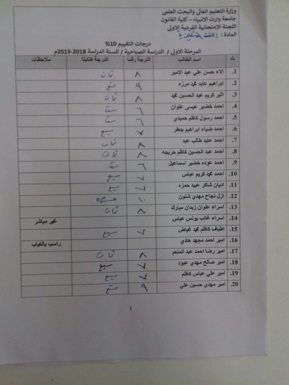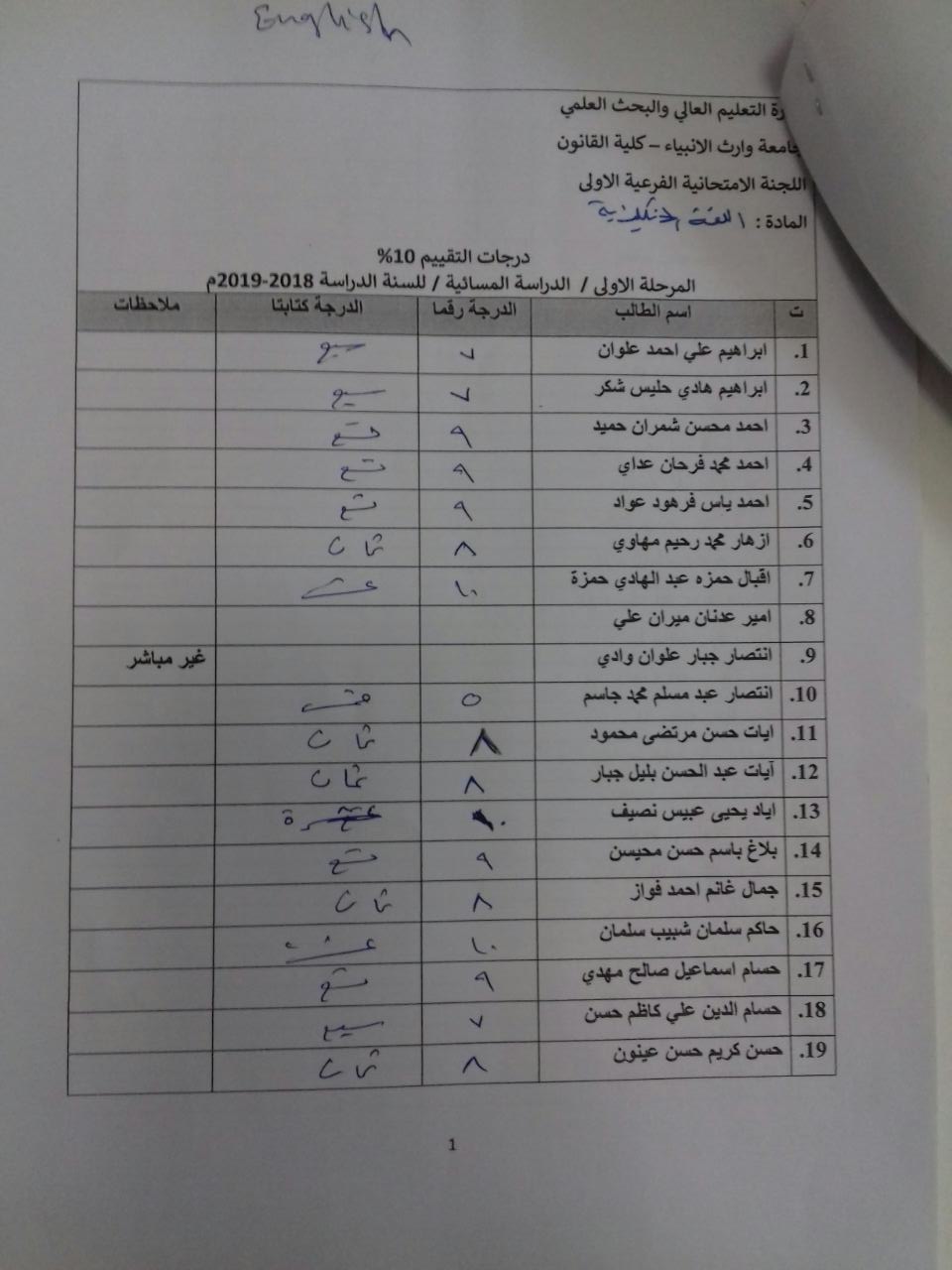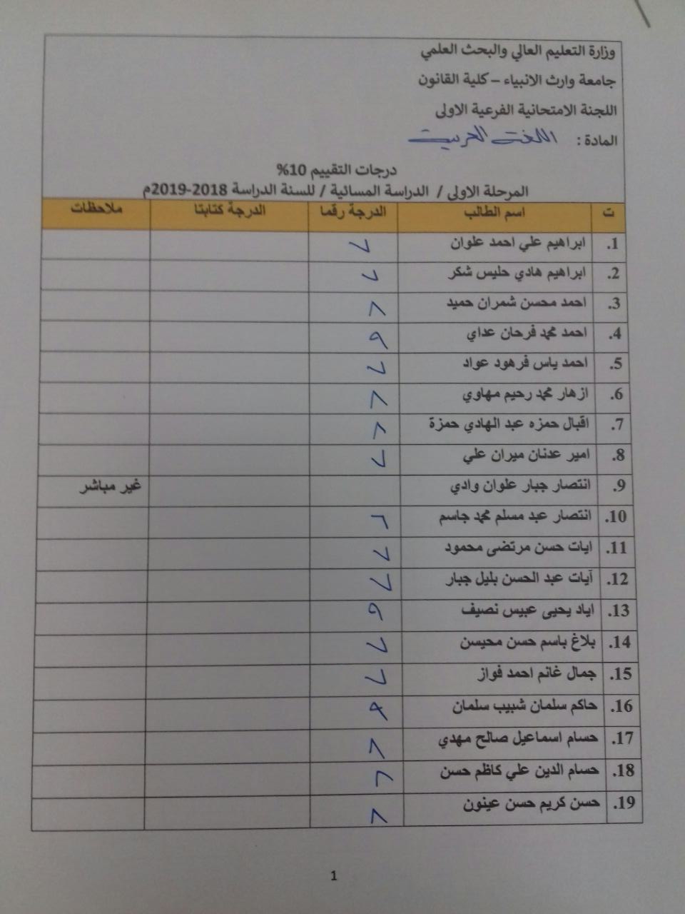 درجات الشفوي (المرحلة الاولى)