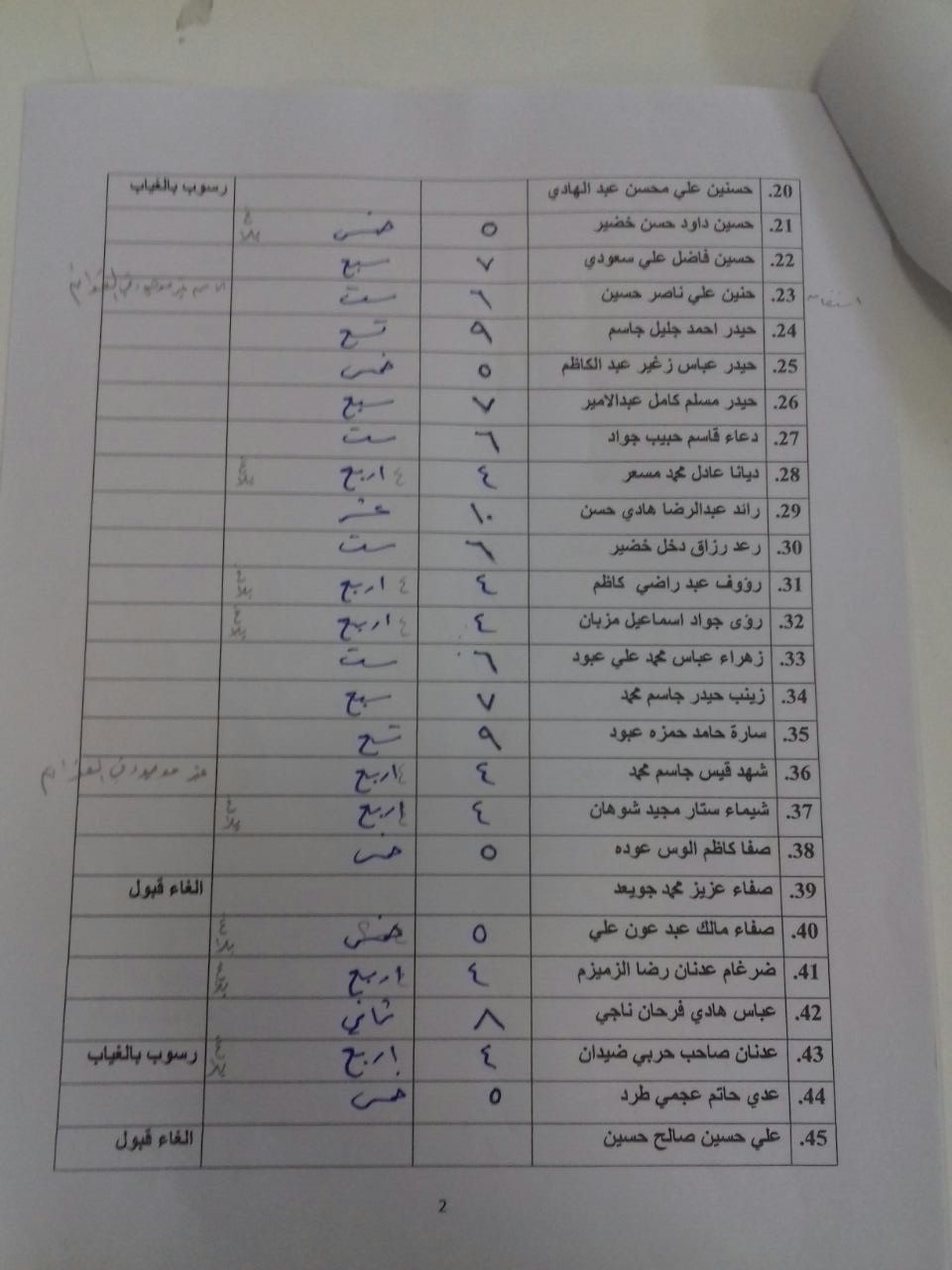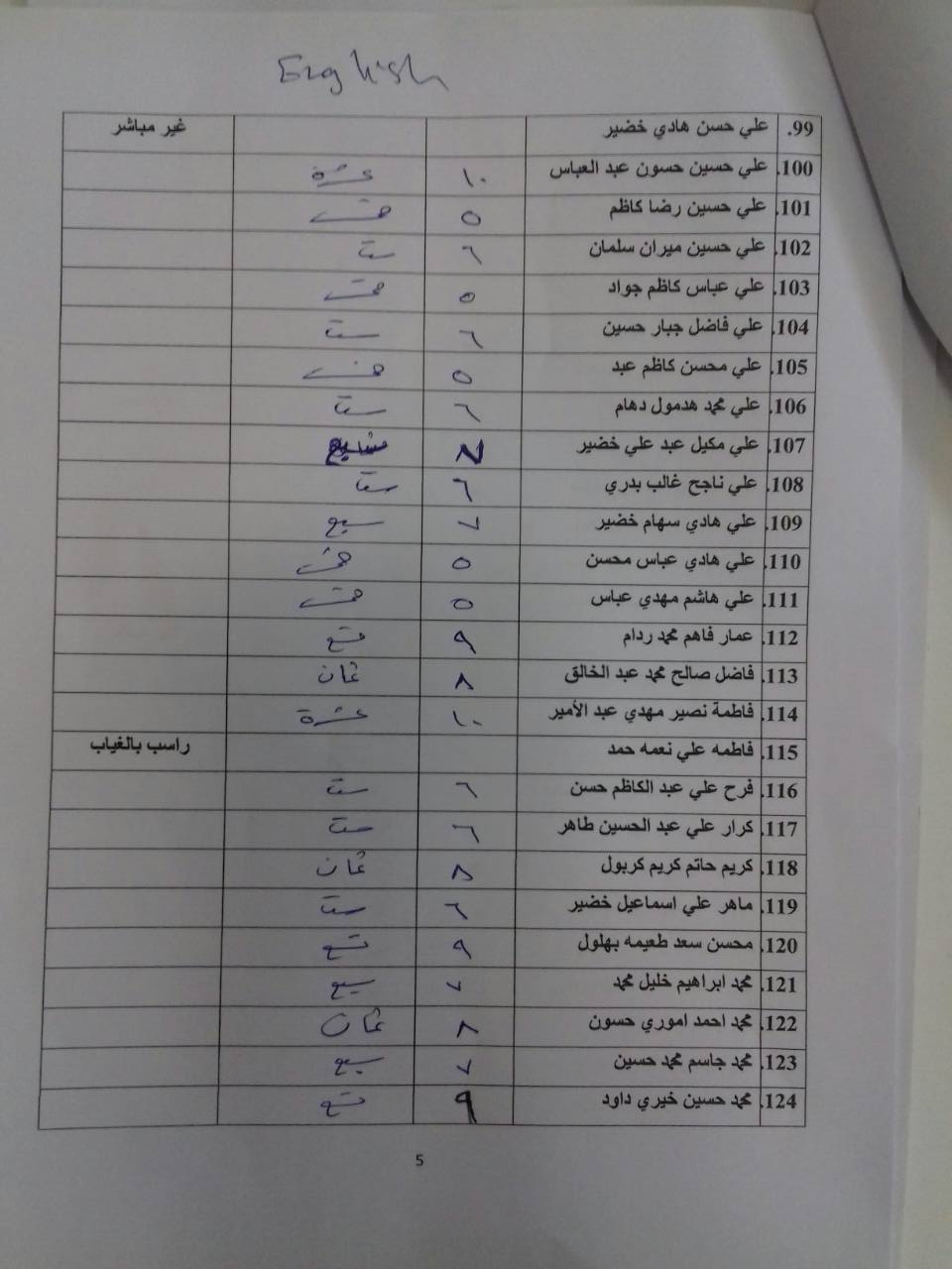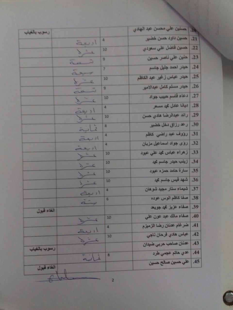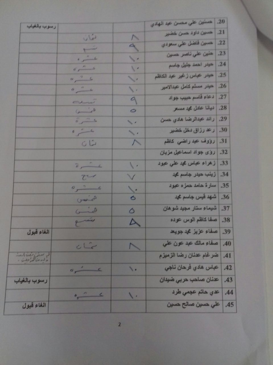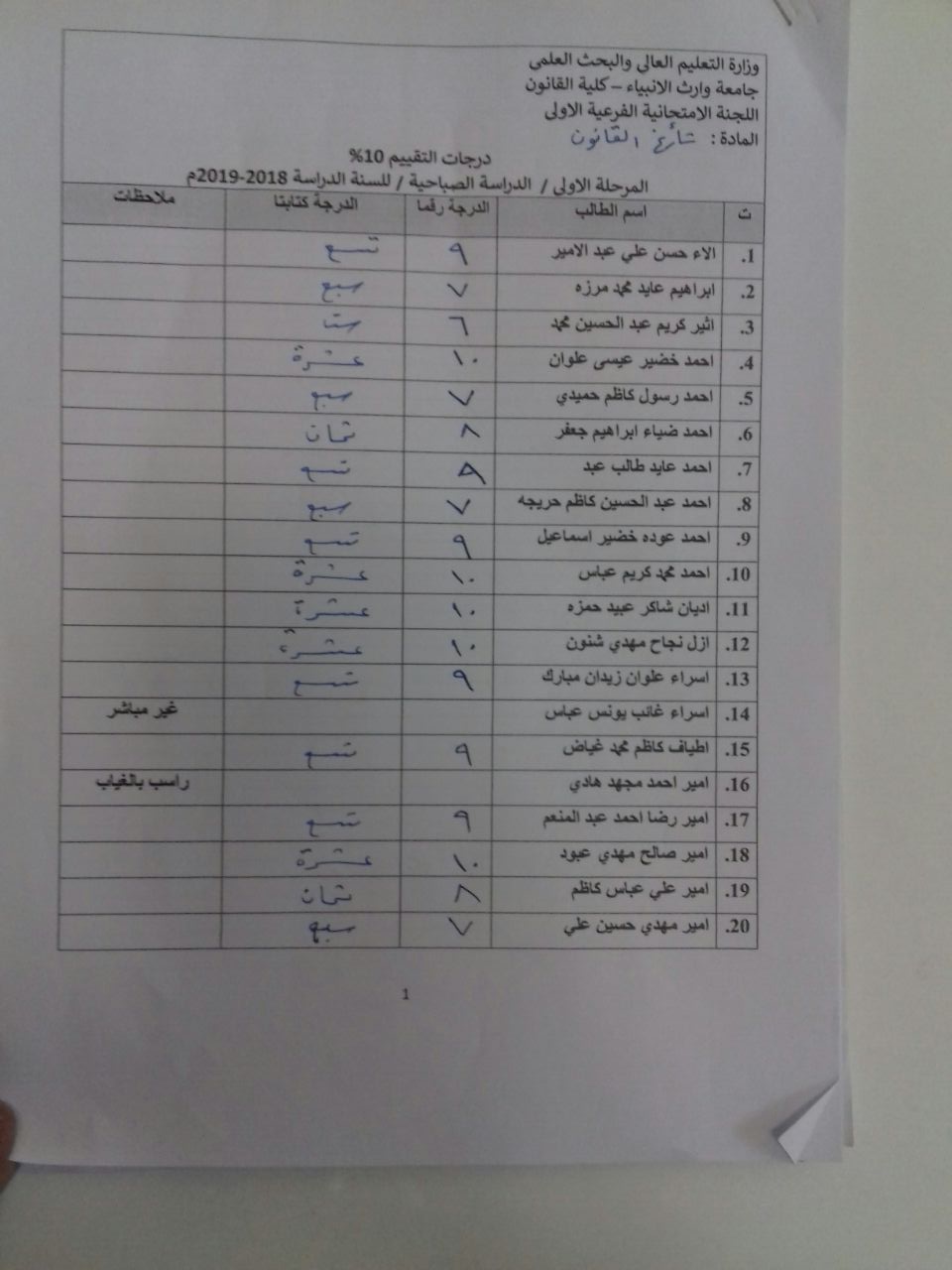 درجات الشفوي (المرحلة الاولى)