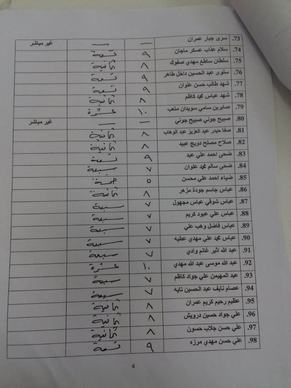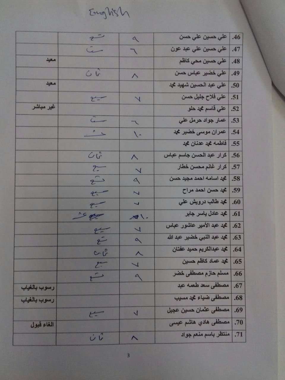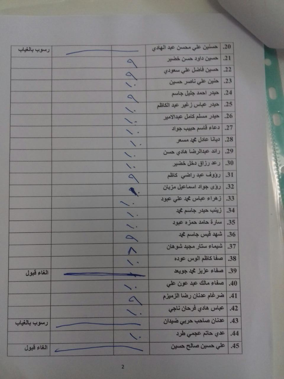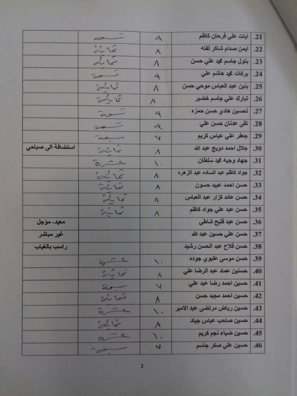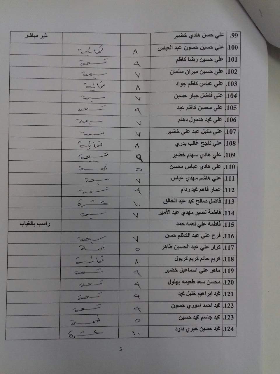 درجات الشفوي (المرحلة الاولى)