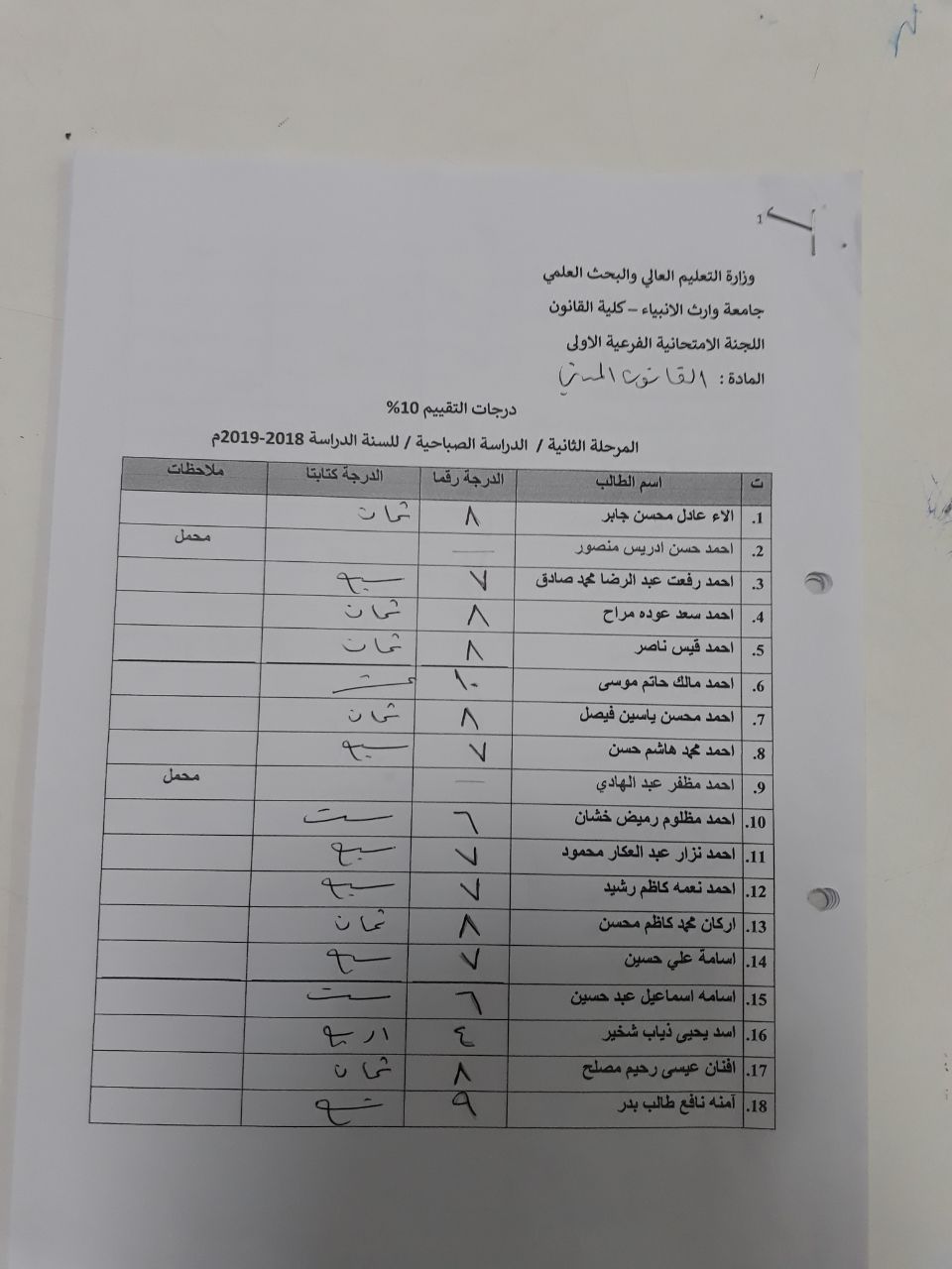 جدول الامتحانات الشهرية