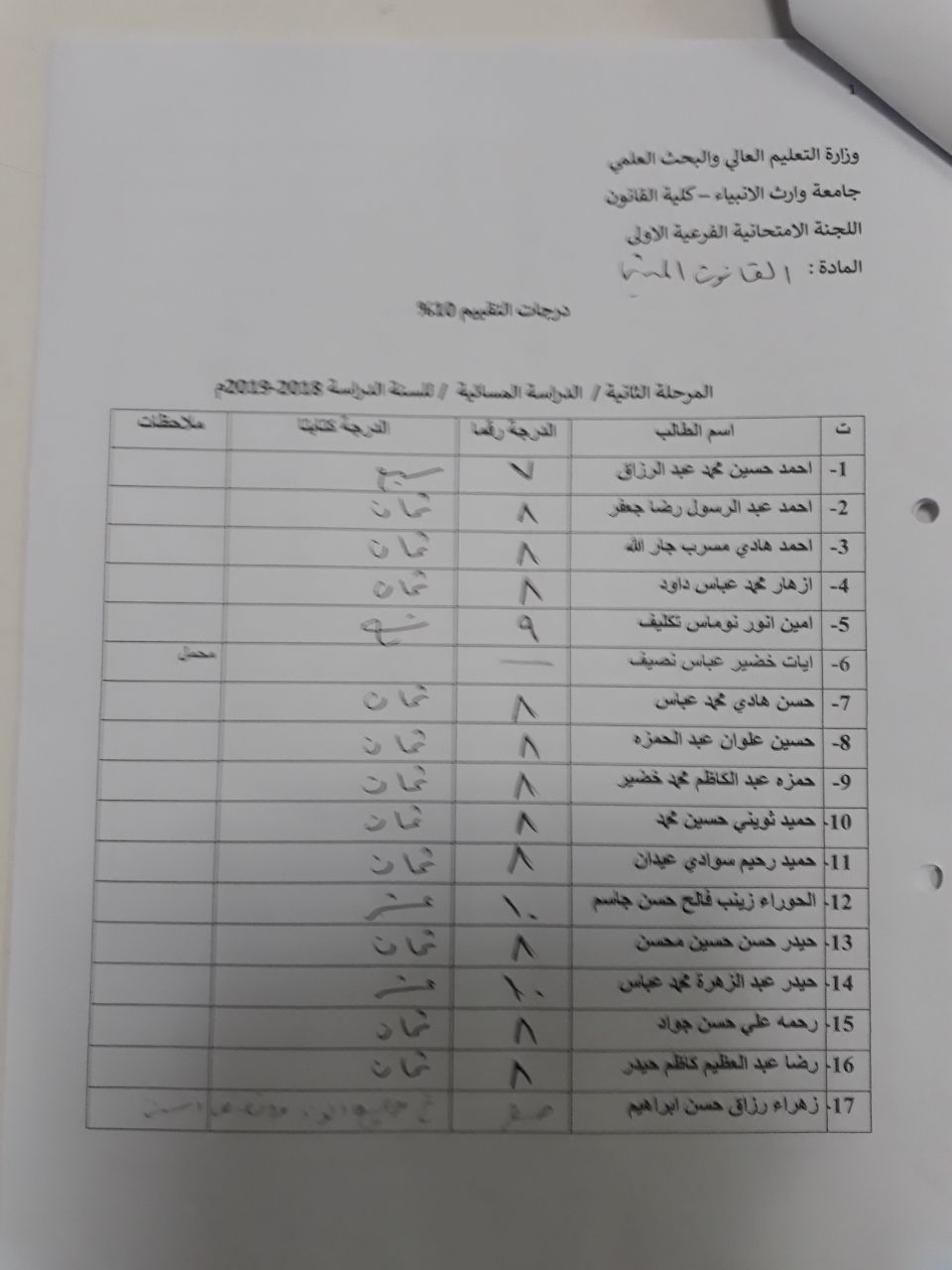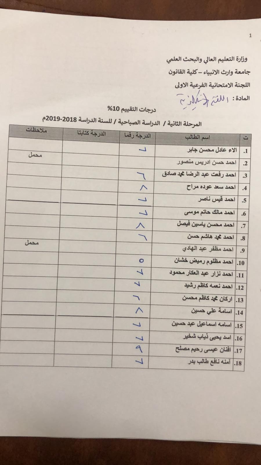 درجات الشفوي (المرحلة الثانية)