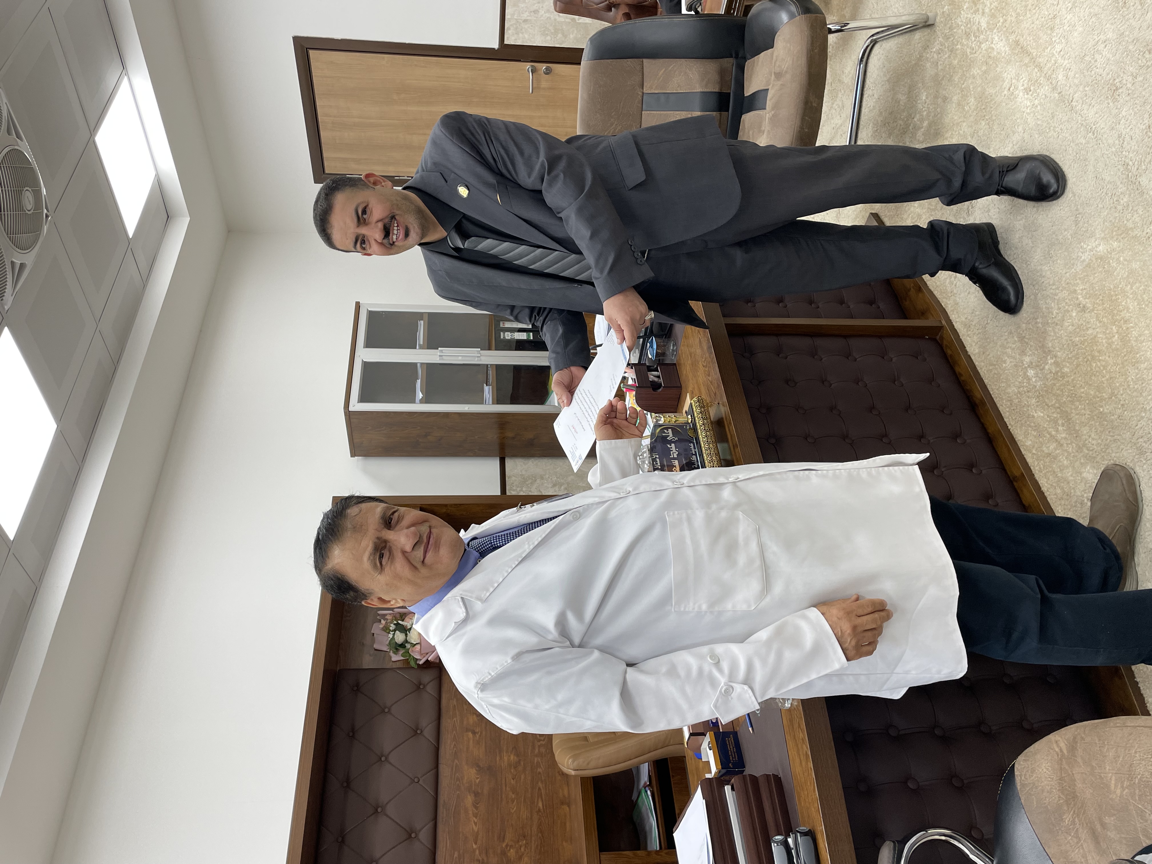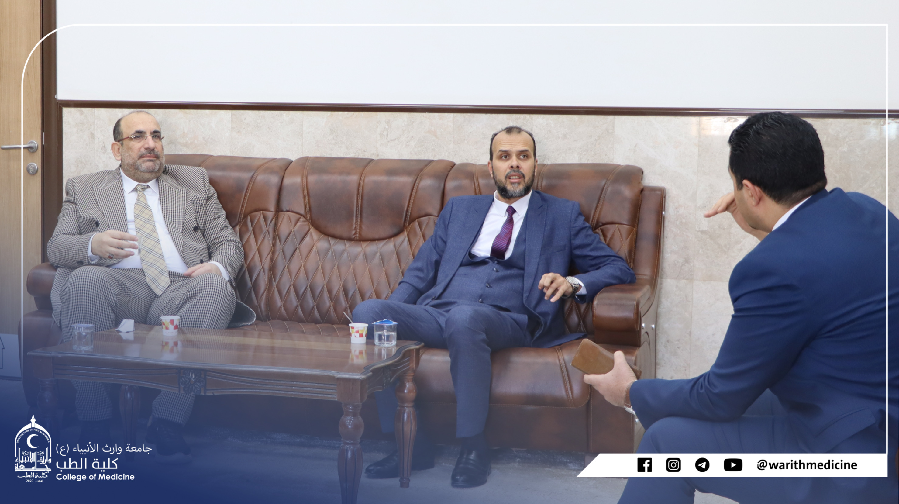 استقبل عميد كلية الطب جامعة وارث الانبياء (ع) الاستاذ الدكتور علي عبد سعدون الغزي المحترم    الدكتور معد نصيف جاسم استشاري الكلية الملكية البريطانية حيث تم القاء حول إمكانية انشاء مركز طب الطوارئ والكوارث بتعاون  مع الكلية الملكية البرطانية وفتح قنوات تعاون بين  كلية الملكية البرطانية وجامعة وارث الانبياء (ع) حيث اطلع الوفد على البنى التحتية  والموارد البشرية في الجامعة.