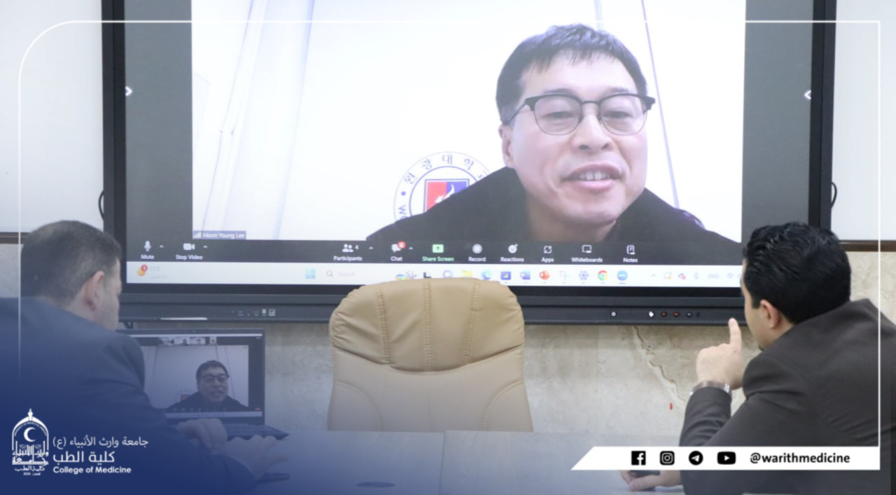 برعاية السيد رئيس جامعة وارث الانبياء عليه السلام الاستاذ الدكتور ابراهيم الحياوي المحترم واشراف وكتابعة مباشرة من قبل السيد عميد كلية الطب الاستاذ الدكتور علي عبد سعدون المحترم عقدت كلية الطب بعمادتها ورؤساء الفروع عدد من الاجتماعات مع عدد من ممثلين الجامعات الكورية وجاءت هذه الاجتماع لعقد مذكرة تعاون مع كليات الطب في الجامعات الكورية لتبادل الخبرات ونقل التجارب بين الجامعات بالاضافة الى وضع خطة للسفرات العلمية والتبادل بين الاساتذة والطلاب.