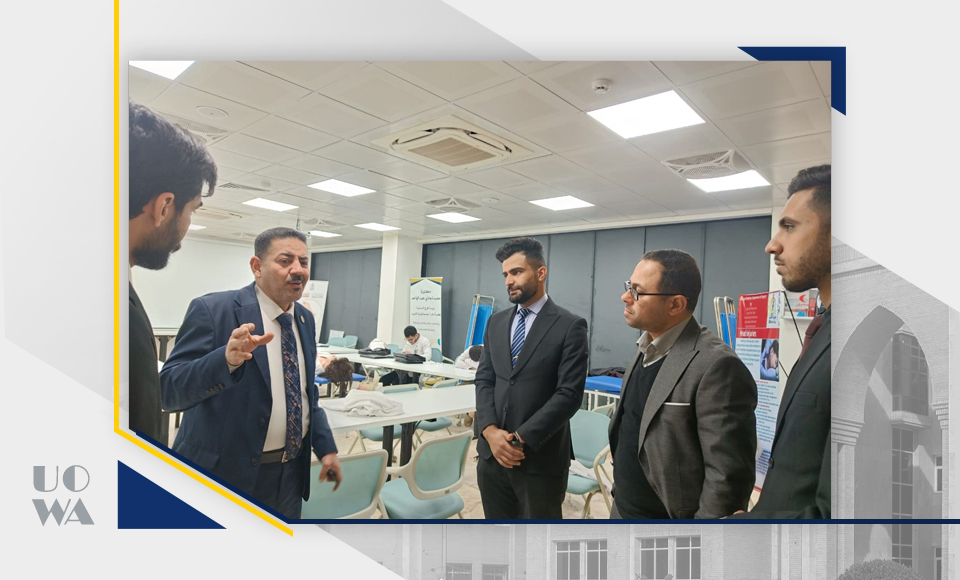 السيد عميد كلية الطب وارث الانبياء (ع) يستقبل وفد مركز طب الحشود التابع لهيئة الصحة والتعليم الطبي في العتبة الحسينية المقدسة للاطلاع على استعدادات الطلاب و الكوادر التدريسية الذين سيشاركون في خدمة زائري الامام الحسين خلال الزيارة الشعبانية. وقد اطلع الوفد على امكانات الكلية العلمية و التقنية و مختبر المهارات المتطور لتدريب الطلبة و اشاد الوفد بالاهتمام الكبير و الاستعدادات التي تمت من تدريب و دعم مادي وًمعنوي من قبل عمادة الكلية للاحتفالية و الزيارة الشعبانية وخدمة زائري سيد الشهداء عليه السلام .
