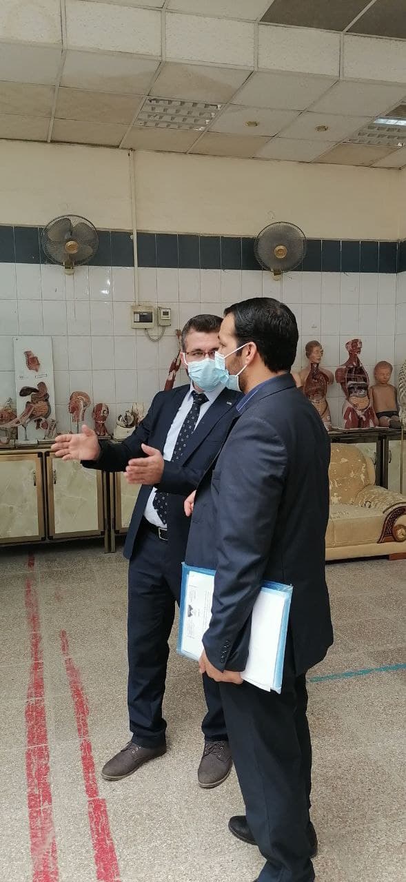 زار وفد من كلية الطب جامعة وارث الأنبياء (ع) مكون من الدكتور اسعد عباس معاون العميد والدكتور علي عزيز رئيس فرع التشريح والدكتور سامر فيصل التدريسي في فرع التشريح والتقى بالدكتور صالح الخفاجي رئيس فرع التشريح في كلية الطب جامعة الكوفة وقـــام الوفـــد بالاطلاع ميدانيا على بعض المرافق العلمية في كليــــة الطب كمختبر التشريح.