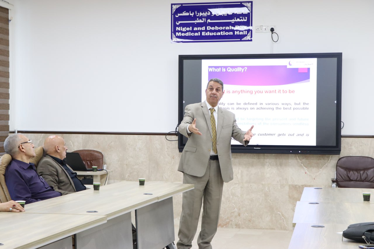 بحضور السيد رئيس الجامعة المحترم الاستاذ الدكتور ابراهيم الحياوي والسيد عميد كلية الطب المحترم الاستاذ الدكتور علي عبد سعدون اقامت كلية الطب ندوة في الجودة والاعتمادية في الصحة حيث حاضر فيها الدكتور الاختصاص علي العنبوري وقدم السيد العميد كتاب الشكر والتقدير الى الدكتور علي عنبوري تثميناً لجهوده متمنين له دوام التوفيق.