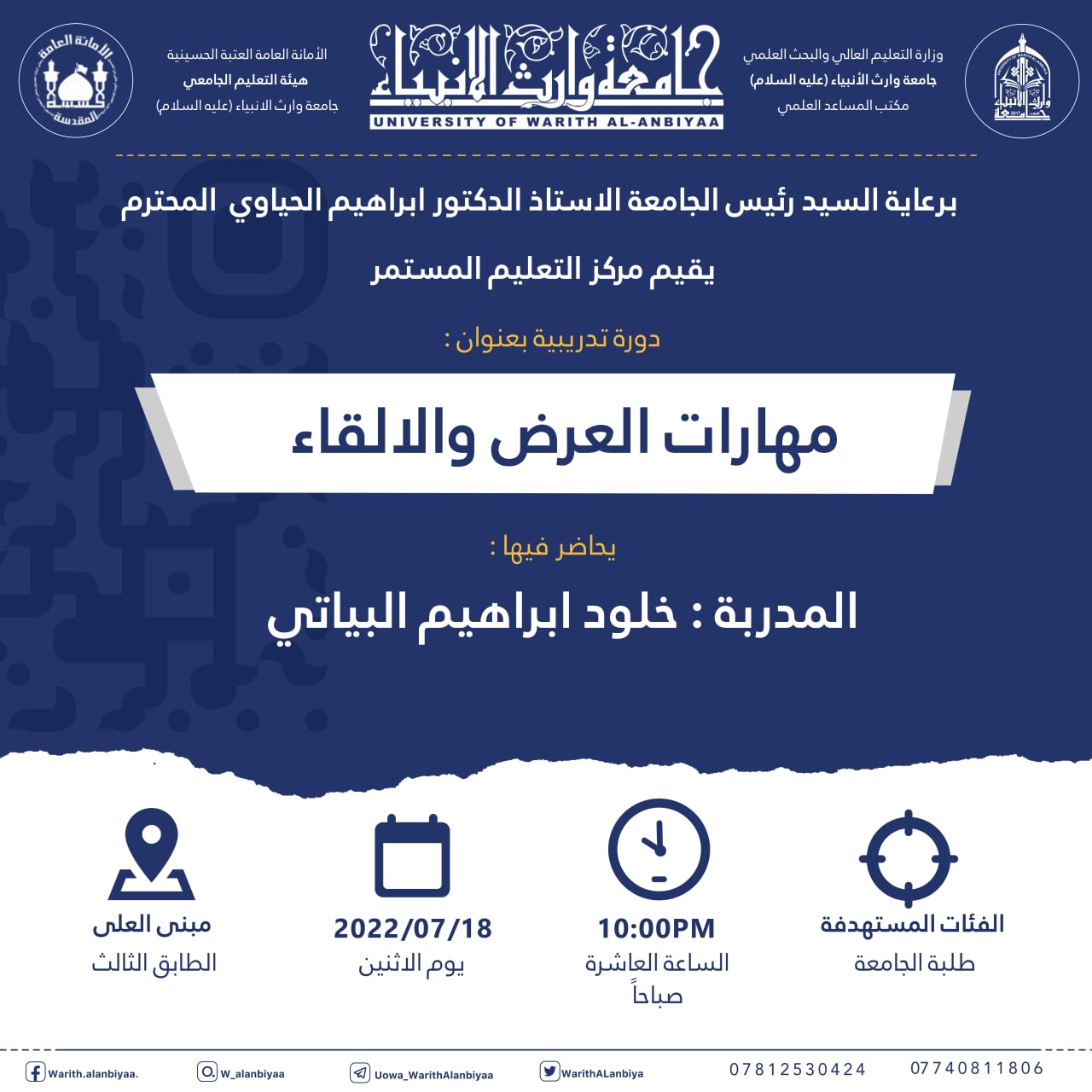 2022/07/09حفل تخرج طلبة كلية العلوم الإسلامية في جامعة وارث الانبياء في اعلام قناة كربلاء المقدسة ..