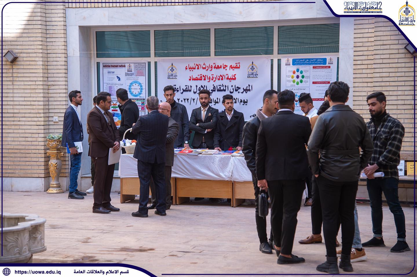 نشاط لا صفي....نحو اعداد وتحضير من قبل نخبة من طلبة قسم المحاسبه للمرحلة الأولى وتحت اشراف الدكتورة هبة الله مصطفى و المدرس المساعد عبد الامير صبار والمدرس المساعد علي محمد حسن الكيشوان والمدرس المساعد محمد هاشم الموسوي اقامت كلية الادارة والاقتصاد /قسم المحاسبة المهرجان الثقافي الاول للقراءة.انطلقت فكرة مهرجان القراءة من قبل طلبة قسم المحاسبة اذ يهدف المهرجان لتنمية الوعي بأهمية القراءة، وتمكين الأجيال من مفاتيح الابتكار، ودعم قيمهم الدينيه والوطنية والإنسانية؛ إذ تتمثل رسالته في إحداث نهضة في القراءة عبر جعلها أولوية لدى كافة فئات المجتمع، ويسهم المهرجان في تصدر شبابنا ثقافيًّا من خلال إثراء البيئة الثقافية، كما يؤسس إلى العناية بجميع الكتب القيمه عبر إثراء المكتبة ورفع جودة المحتوى والإخراج، وتشجيع المشاركة المجتمعية الداعمة للقراءة، عبر تقديم مشاريع و مهرجانات ثقافية نموذجية مستدامة.