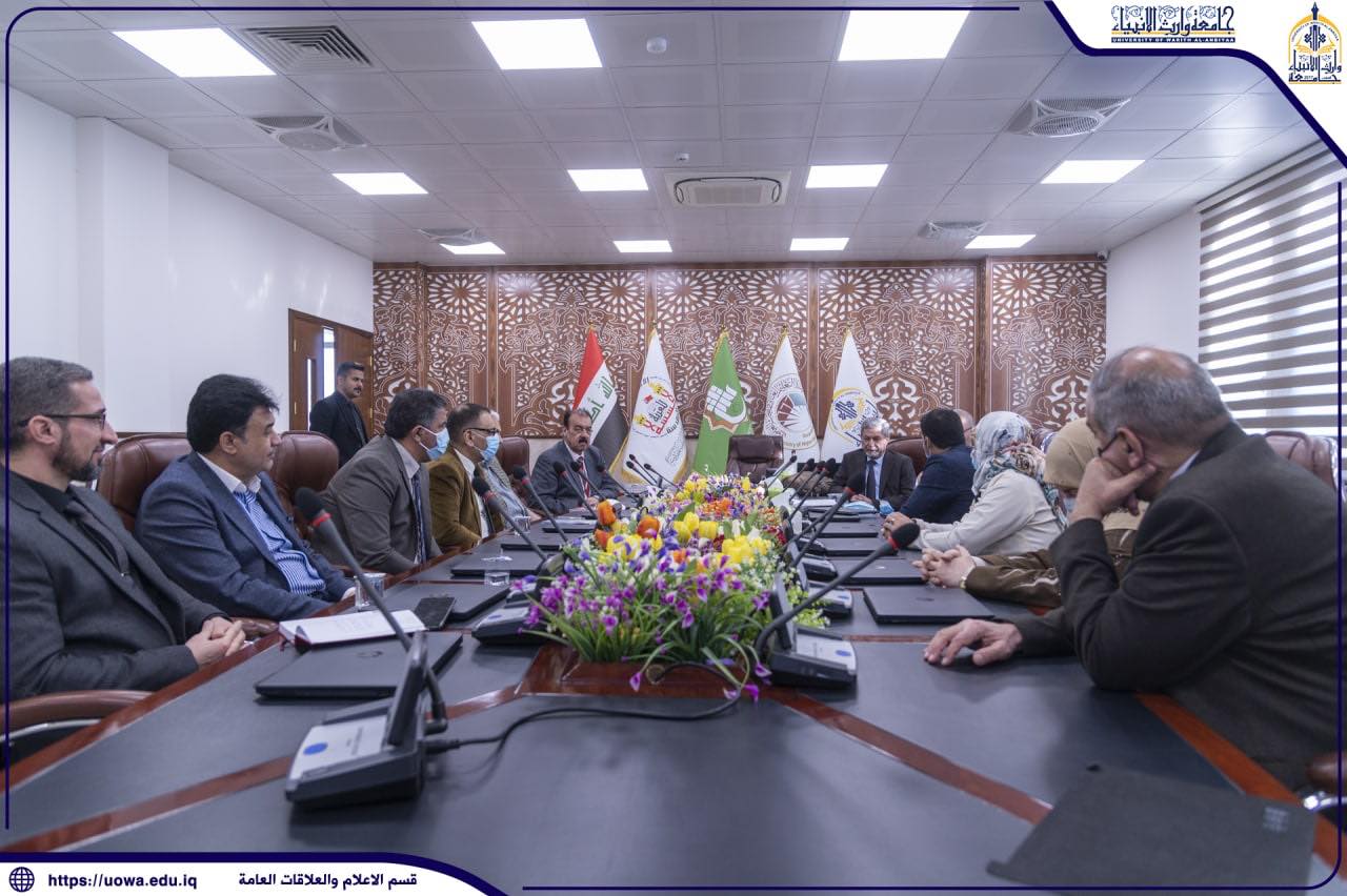 انطلاقاً من الحرص على انفتاح الجامعة على الجامعات الحكومية، وسعياً منها للتكامل من خلال الإفادة من الخبرات العلمية فيها، استقبلت جامعة وارث الانبياء(عليه السلام) وفد رسمي من كلية طب المستنصرية ترأسه السيد معاون العميد الدكتور غسان علي القزويني وعدد من السادة رؤساء الفروع العلمية لغرض عقد مذكرات تفاهم بين الكليتين، وكان باستقبال الوفد السيد معاون عميد كلية الطب الدكتور اسعد عباس الدعمي وعدد من السادة رؤساء الفروع العلمية.وجرى خلال اللقاء بحث ومناقشة آفاق التعاون المشترك بما يعزز التعليم الطبي في العراق، وطرحت العديد من الأفكار في هذا المجال، وأبدى أعضاء الوفد اعجابهم بما يتوفر في كلية الطب البشري من قاعات ومختبرات وأجهزة حديثة جداً وذات تقنيات عالية.وتأتي زيارة الوفد في اطار الاستعدادات والتحضيرات لاعتماد امتحان تقويمي حضوري بين الجامعات والكليات الحكومية والأهلية في مجال التخصصات الطبية والصحية للعام الدراسي 2021-2022 للدور الأول والدور الثاني وللمواد الدراسية التي قررتها لجان عمداء كليات الطب للمراحل ما بعد الأولى. وتم خلال الاجتماع مناقشة متطلبات رصانة الاختبارات التقويمية وآليات تنفيذها، انطلاقاً من رسالة وسياسة كليات الطب في تطوير البيئة التعليمية وتعزيز مرتكزاتها العلمية وقياس جودة مخرجاتها وتحسينها.