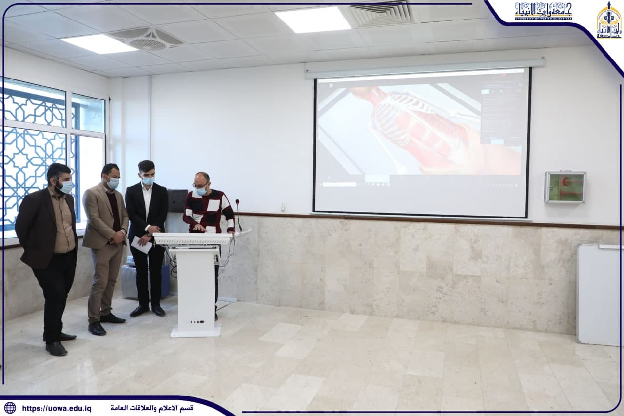 حرصاً على إدخال افضل التقنيات الحديثة في طرائق التدريس العملية ، وبحضور السيد المساعد العلمي الاستاذ الدكتور عباس الدعمي وعميد كلية الطب الاستاذ الدكتور فالح البياتي افتتحت كلية الطب مختبر التشريح الإفتراضي (3D) الذي يعتبر من أهم المختبرات التي يعتمد عليها طلبة الكلية ، وعن مواصفات هذا المختبر تحدث الدكتور وليد محمد الانباري ممثل الشركة المجهزة قائلاً :