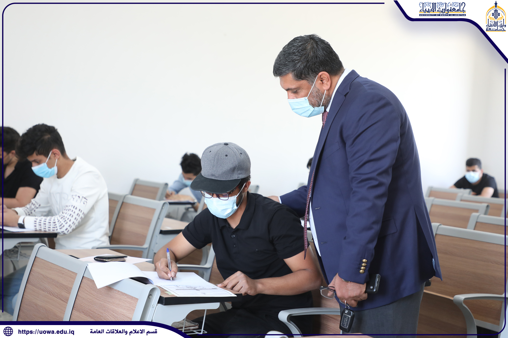 يواصل طلبة جامعة وارث الانبياء(عليه السلام) اداء امتحاناتهم النظرية حضورياً وبإشراف مباشر من قبل رئاسة الجامعة والسادة عمداء الكليات
