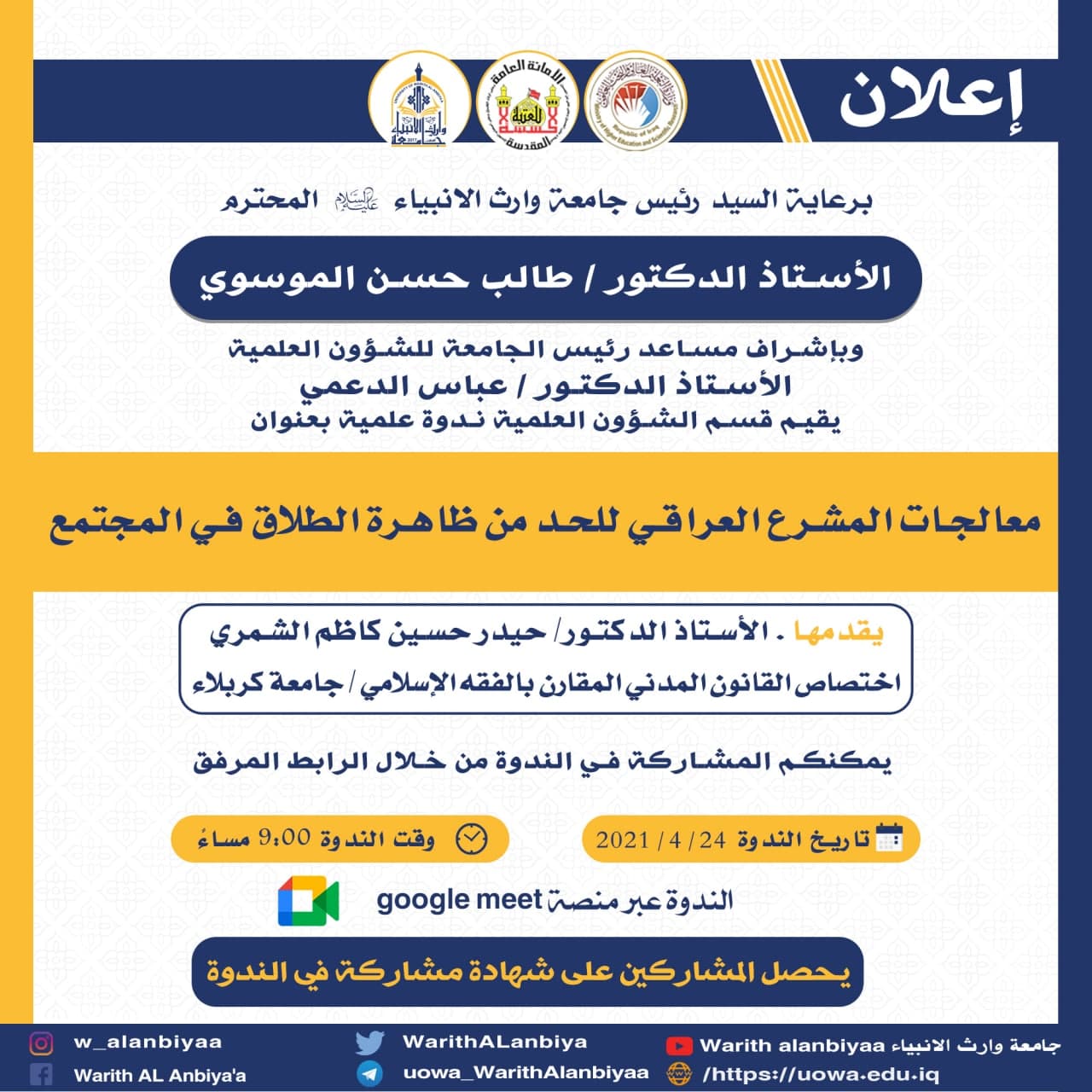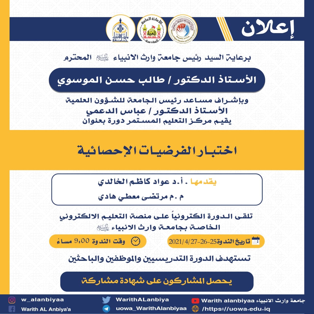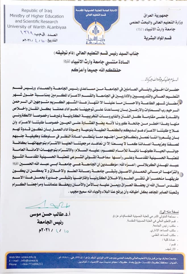 #الامانة_العامة_للعتبة_الحسينية_المقدسة#قسم_التعليم_العالي#جامعة_وارث_الانبياء_عليه_السلام#قسم_الاعلام_والعلاقات_العامة