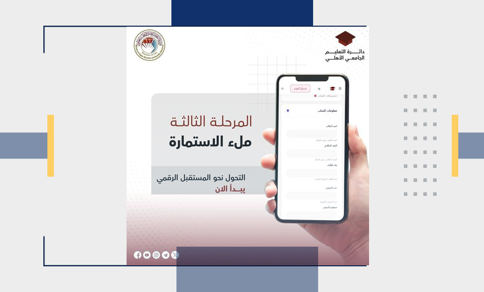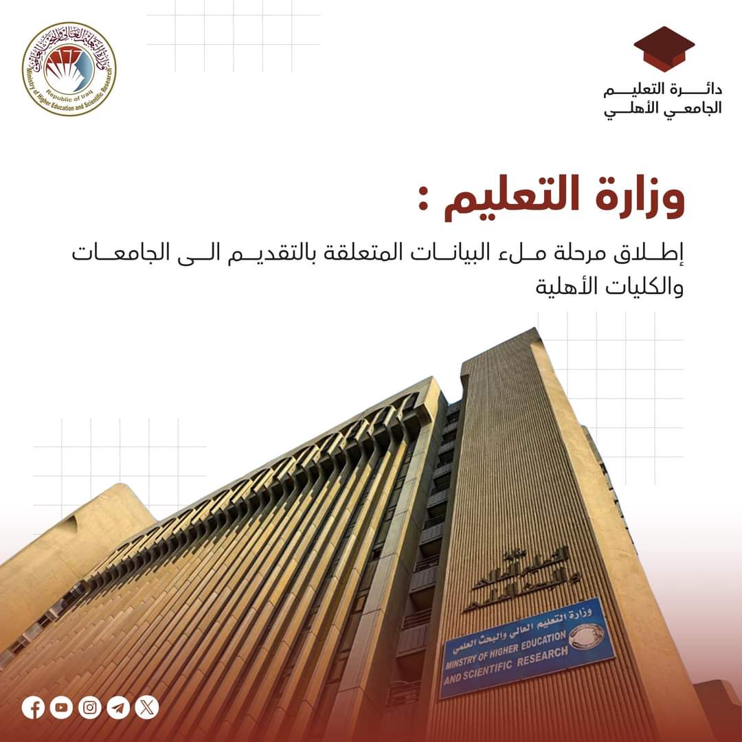 تم اطلاق مرحلة ملء البيانات وتفعيل القنوات الخاصة المتعلقة بالتقديم الى الجامعات الاهلية العراقية.