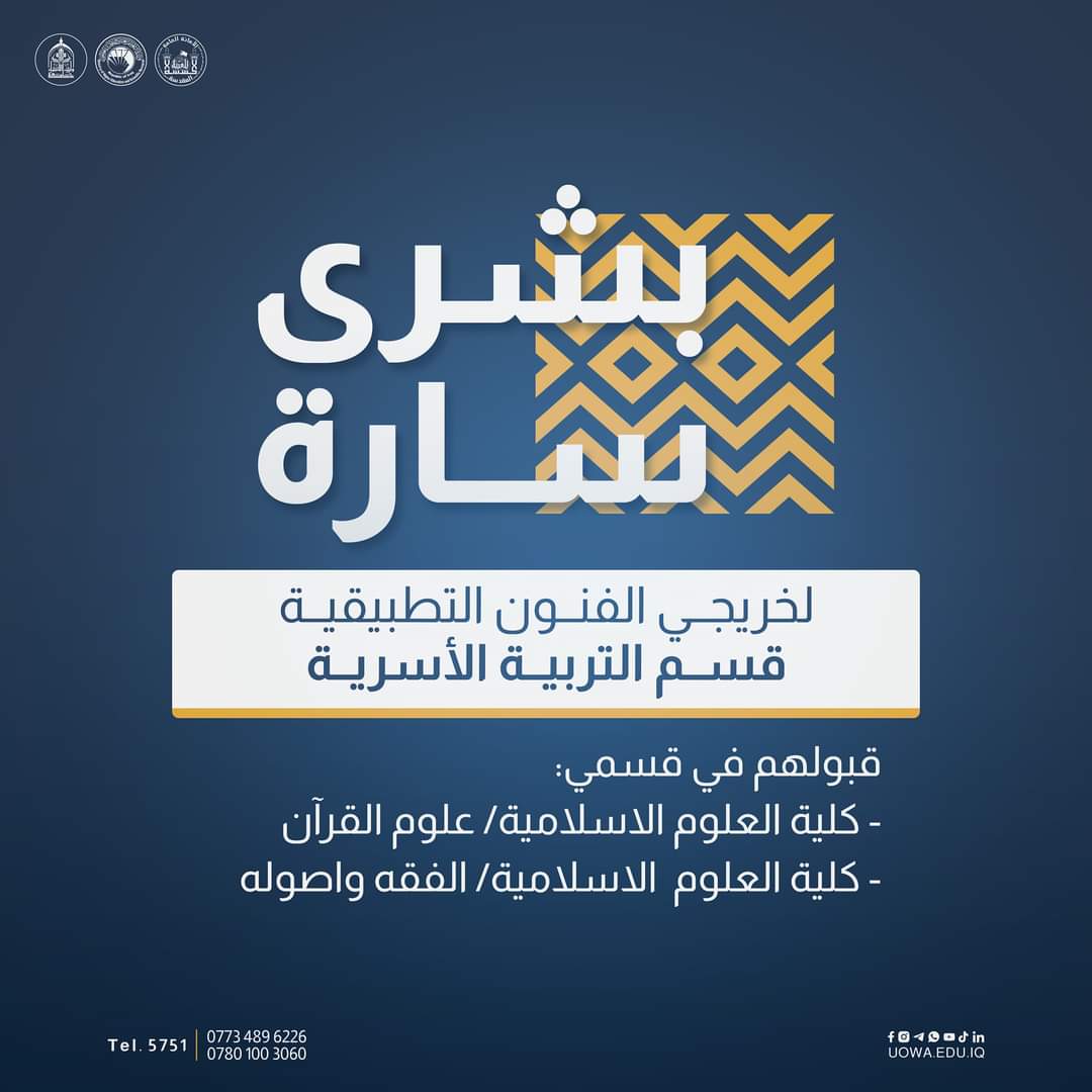 بشرى سارة لخريجي الدراسة الإعدادية فرع الفنون التطبيقية / قسم التربية الأسرية