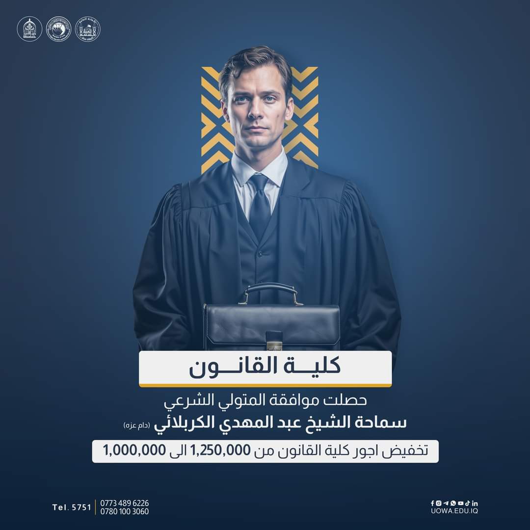 موقع الجامعة: كربلاء المقدسة - طريق بغداد كربلاء.