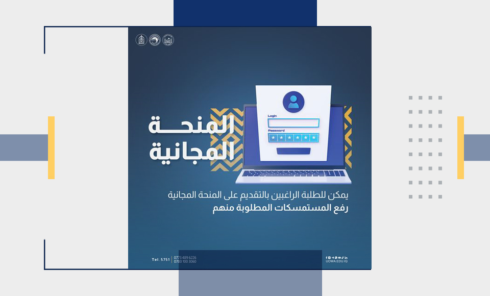 أعلنت جامعة وارث الأنبياء للطلبة الراغبين في التقديم على المنحة المجانية للمجموعة الطبية عن إمكانية رفع المستمسكات المطلوبة عبر البوابة الإلكترونية. ويعمل فريق التسجيل في الجامعة طيلة أيام الأسبوع من الساعة 8 صباحاً حتى 5 مساءً، باستثناء يوم الجمعة الذي يكون الدوام فيه من 8 صباحاً حتى 2 ظهراً، وذلك لاستقبال الطلبة والإجابة عن استفساراتهم وتقديم الدعم اللازم لإتمام المرحلة الأولى والثانية من التقديم.