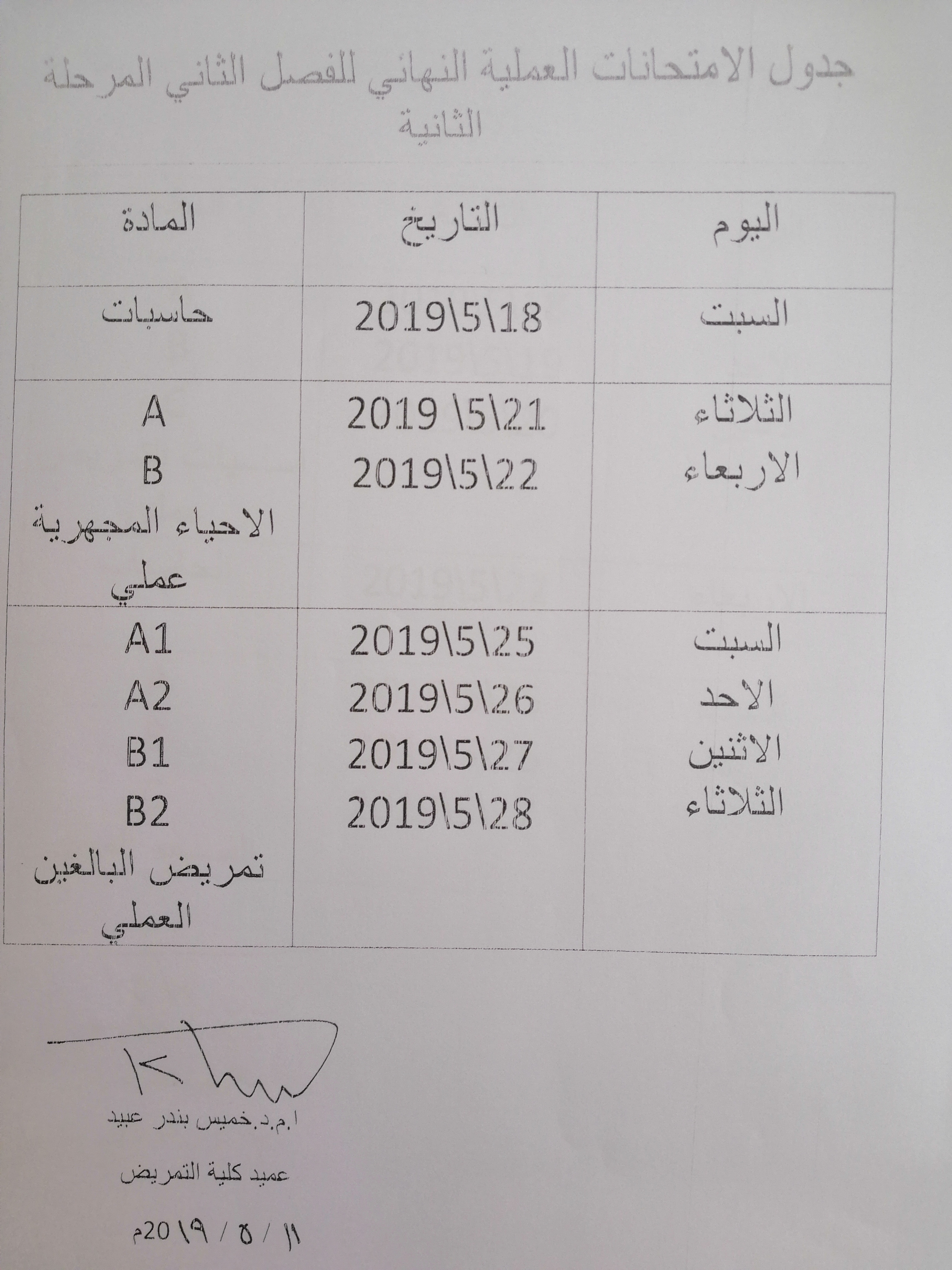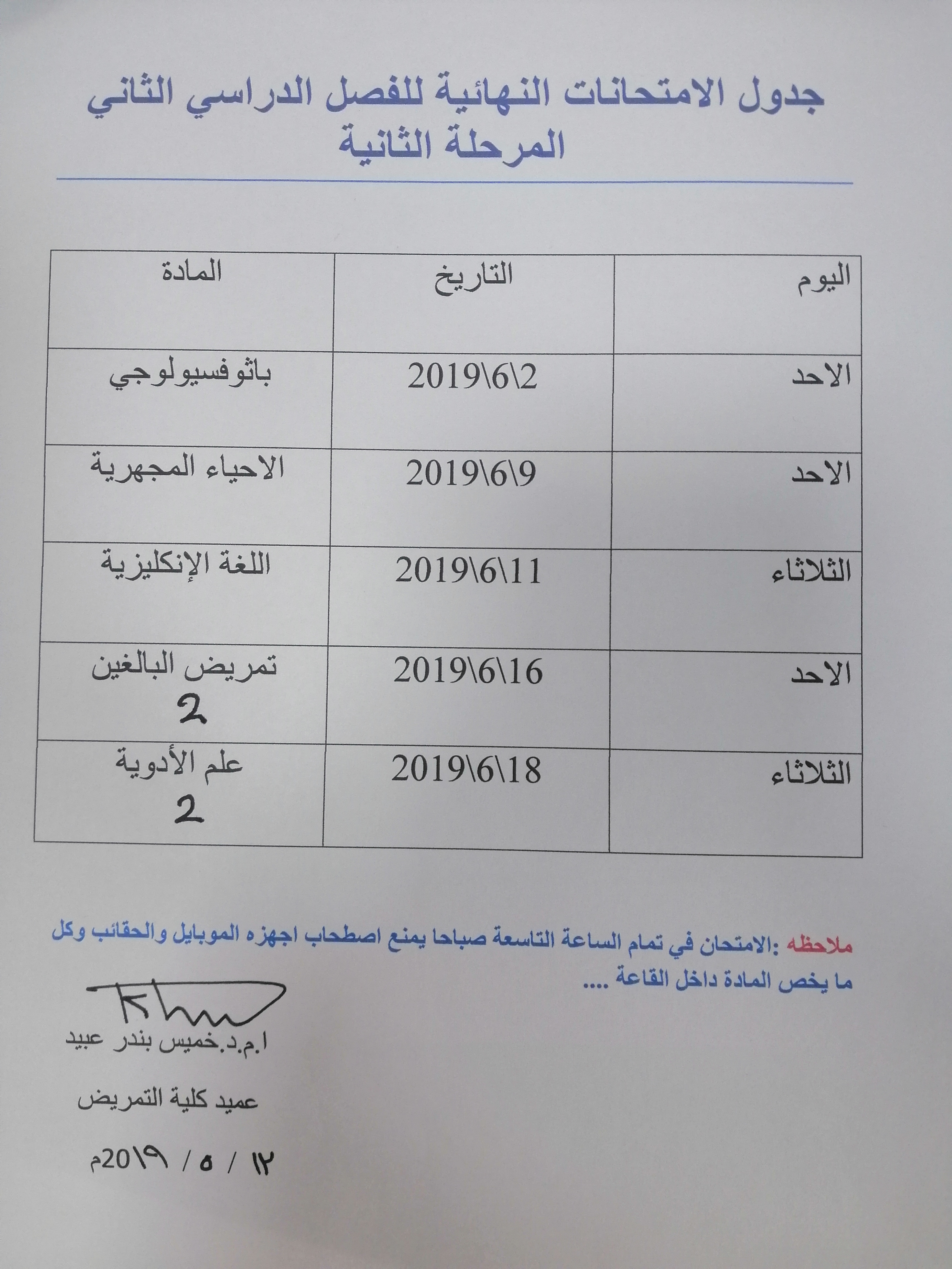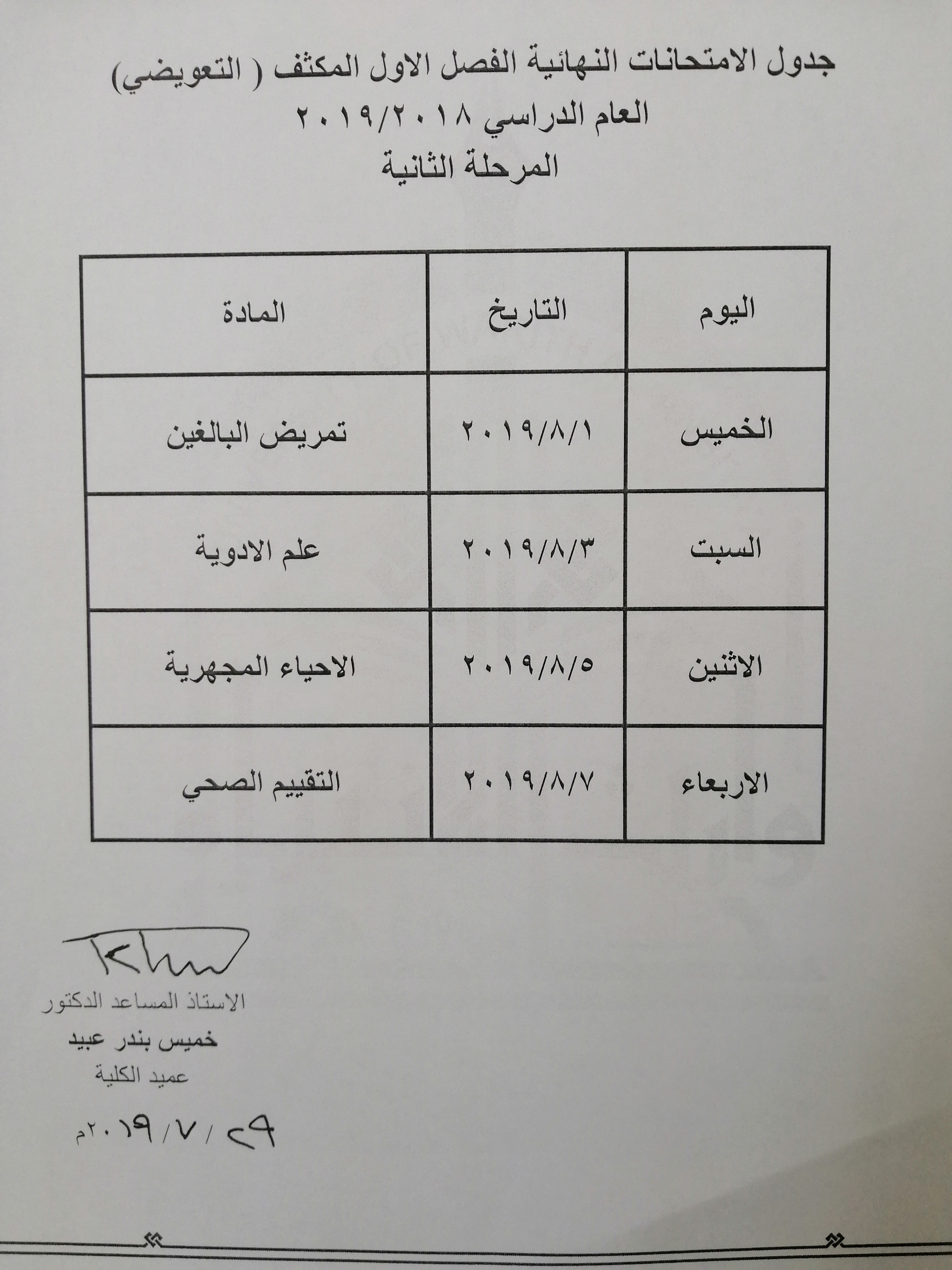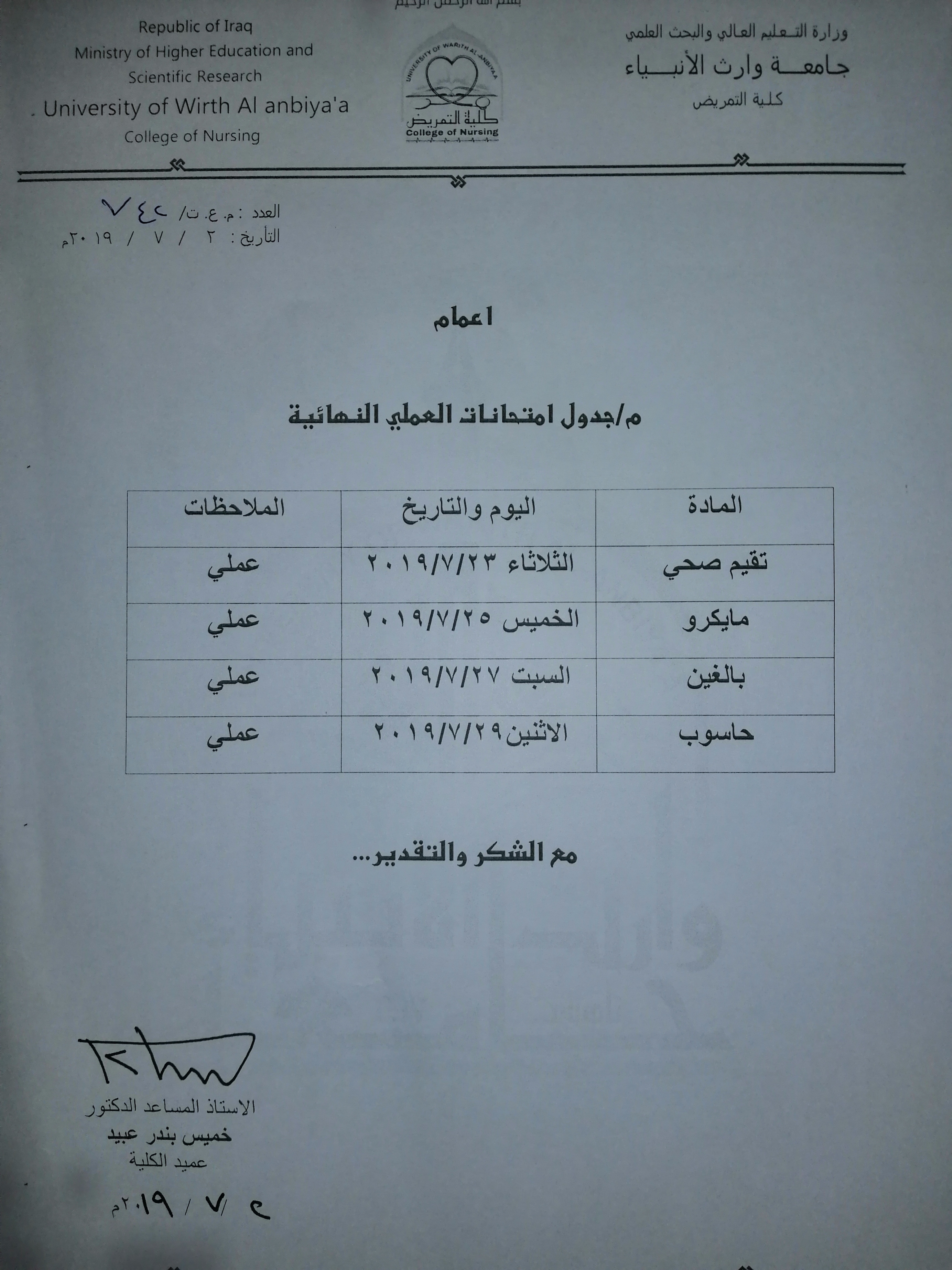 نود اعلام طلبتنا الاعزاء بأن اخر يوم لتقديم الاعتراضات هو يوم السبت  الموافق ٢٩/٦/٢٠١٩.