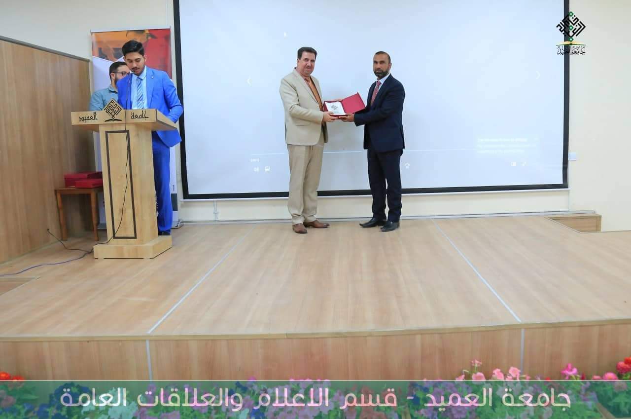 وقد تقدمت جامعة العميد بتكريم الدكتور بندر على مشاركتة في الاحتفالية ودوره الفعال الذي يقدمه في دعم المسيرة التعليمية والعلمية لمهنة التمريض.