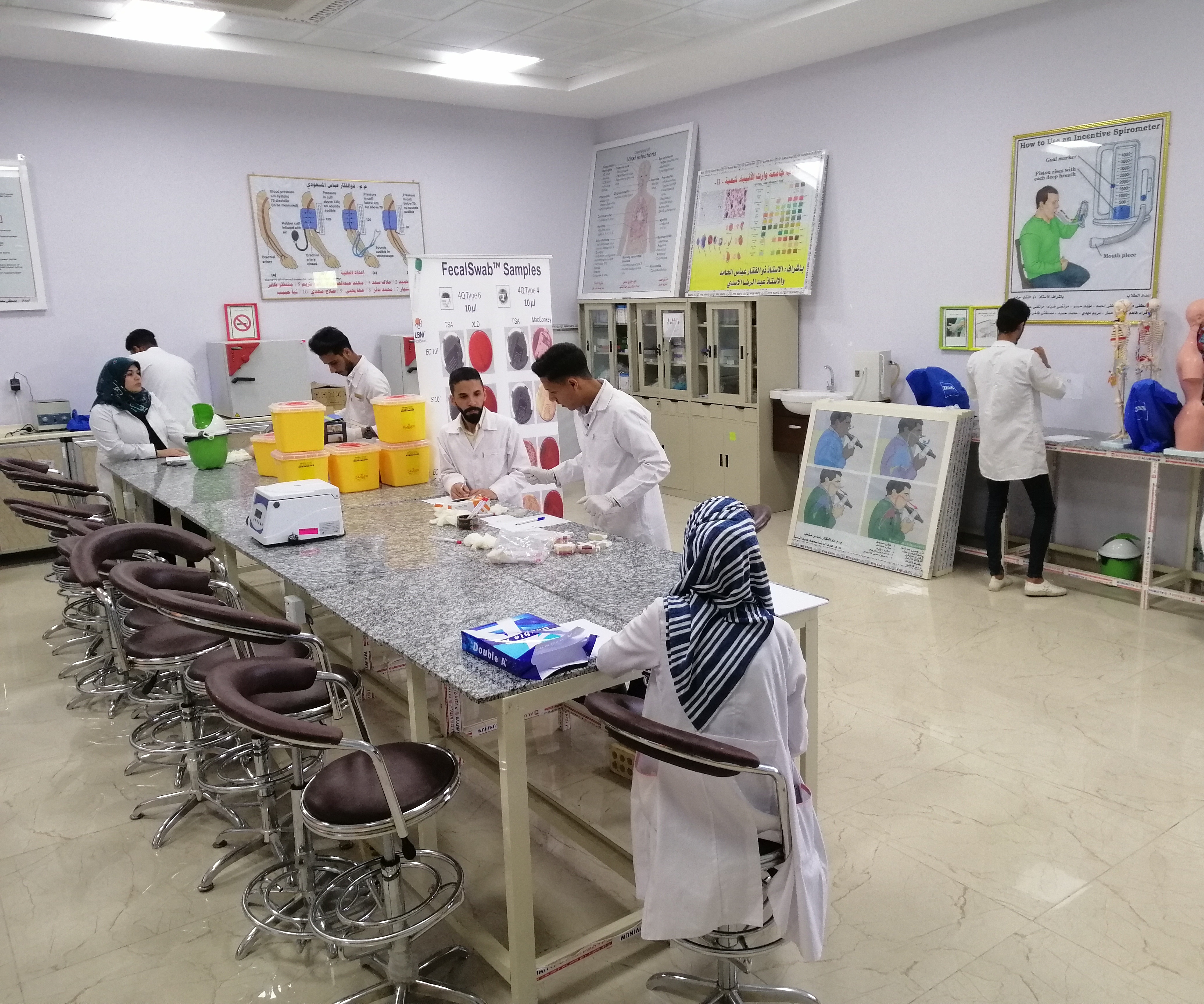 كلية التمريض / جامعة وارث الانبياء ( عليه السلام) تجري امتحان عملي لطلبة المرحلة الثانية في مادة الاحياء المجهرية ، كما بين الاستاذ م.م.بهاء علاء فرحان الدعمي ان الامتحان اجري وفق طرق حديثة لاظهار امكانيات الطالب العلمية والعملية في التعامل مع الاجهزة المختبرية وطرق تعقيم الادوات وطرق اخذ العينات والاوساط الزرعية،