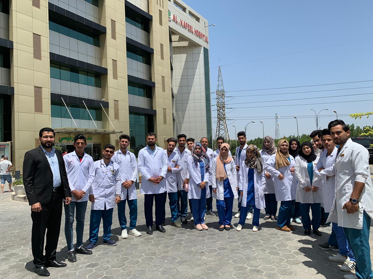 حيث كان باستقبالنا قسم العلاقات و الاعلام في المستشفى و مرافقة الوفد في جميع مرافق المستشفى حتى نهاية الزيارة و العودة الى الجامعة