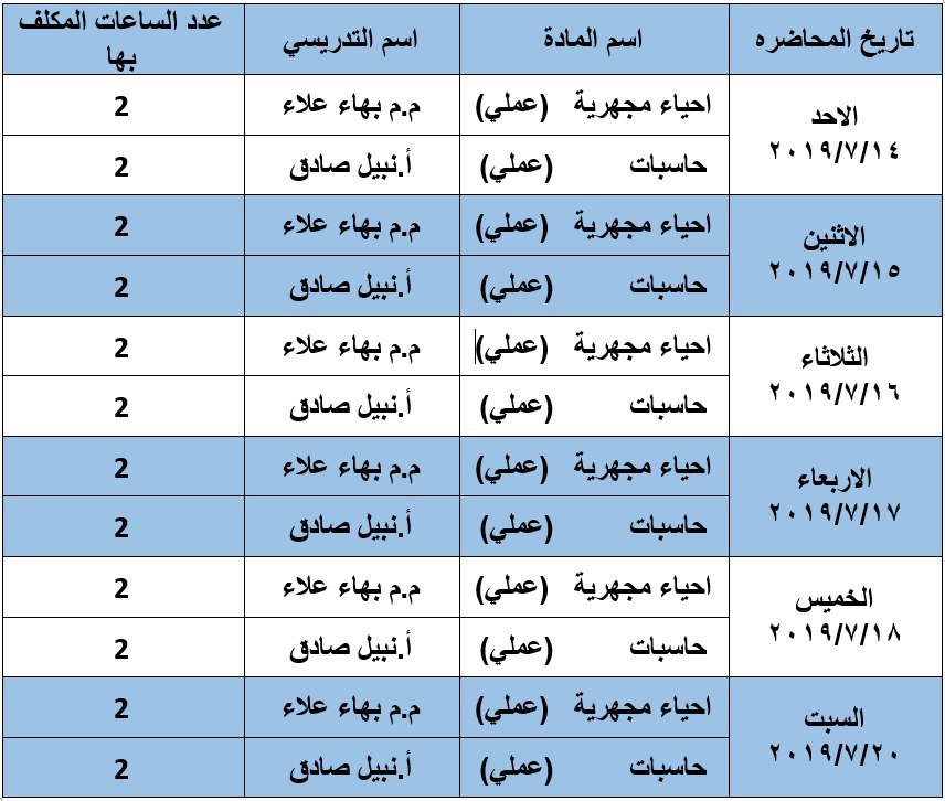 دورة التدريب الصيفي لطلاب المرحلة الأولى اعتبارا من تاريخ 2019/7/1 ولغاية 2019/9/1،