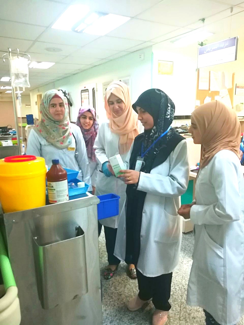 حيث تم توزيع الطلاب على مختلف أقسام المستشفى ولثلاث خفارات صباحي ومسائي وليلي حسب رغبة الطلاب ،