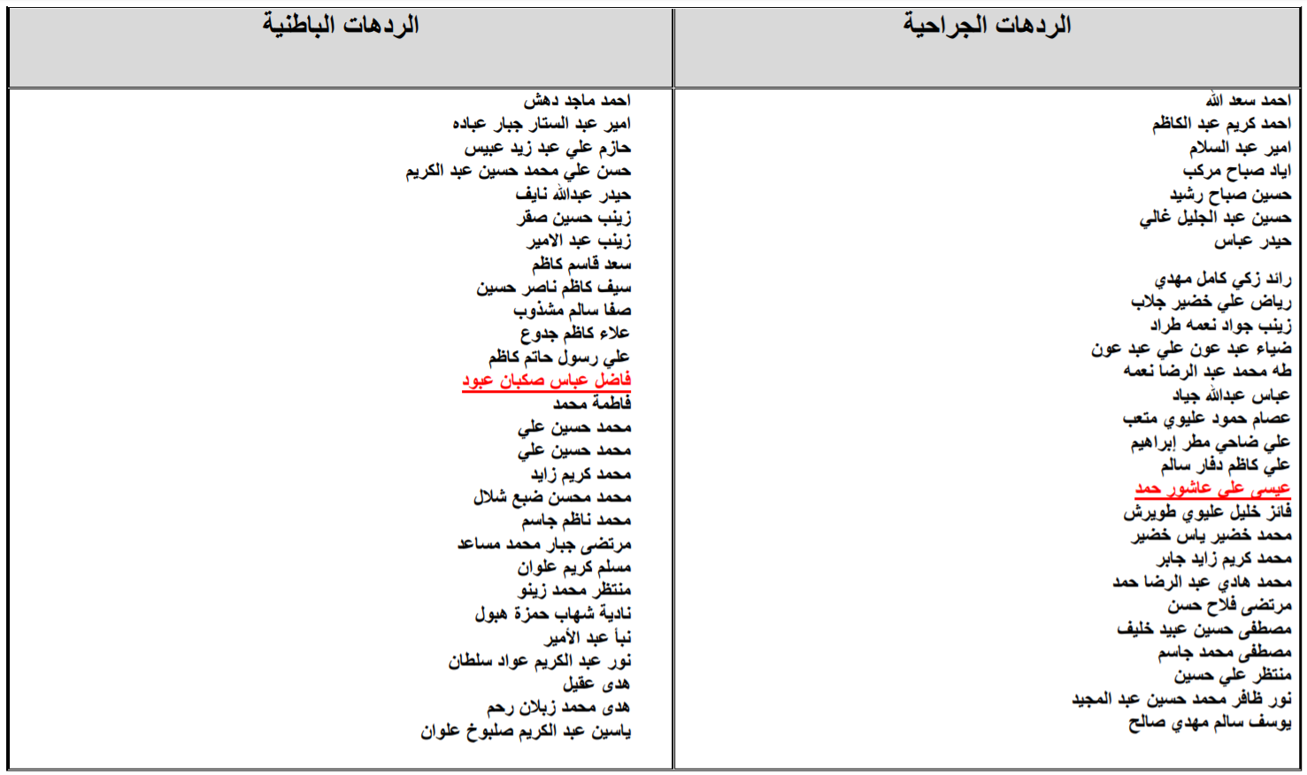 اعزائنا طلبة المرحلة الثانية  اليكم التحديث الجديد لتوزيع الطلبة للتدريب الصيفي على ردهات المستشفى الحسيني