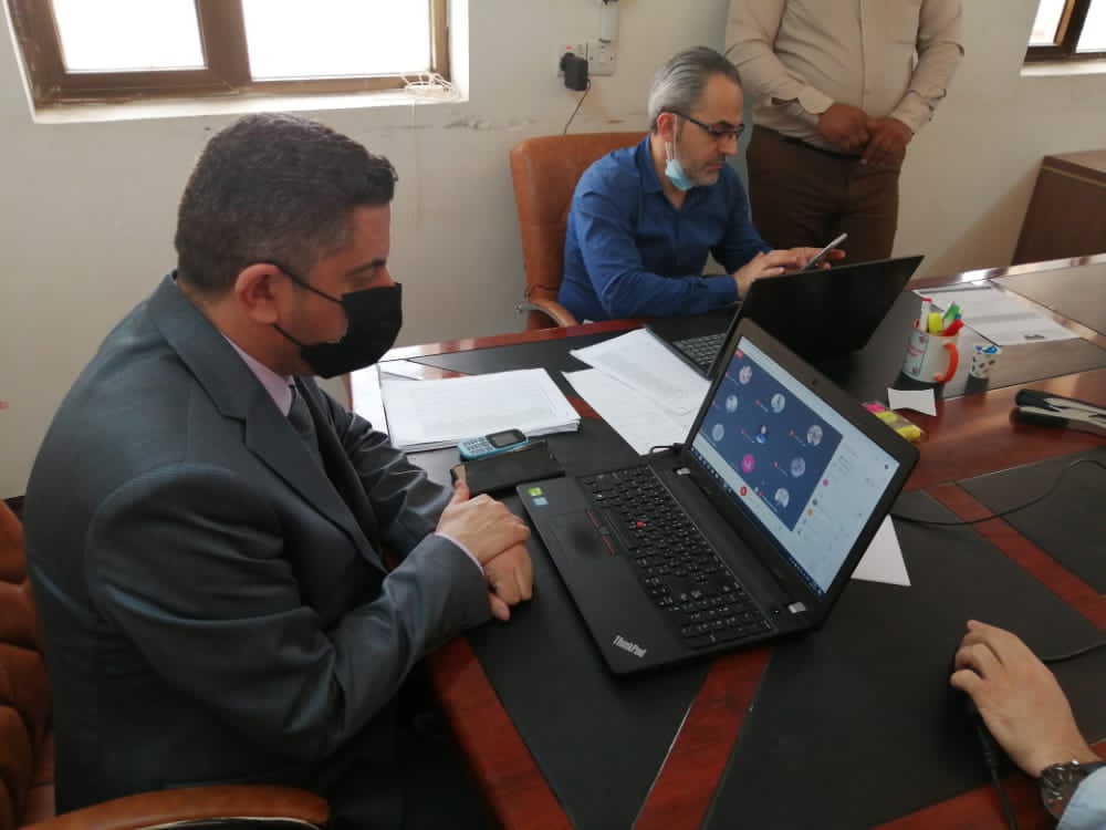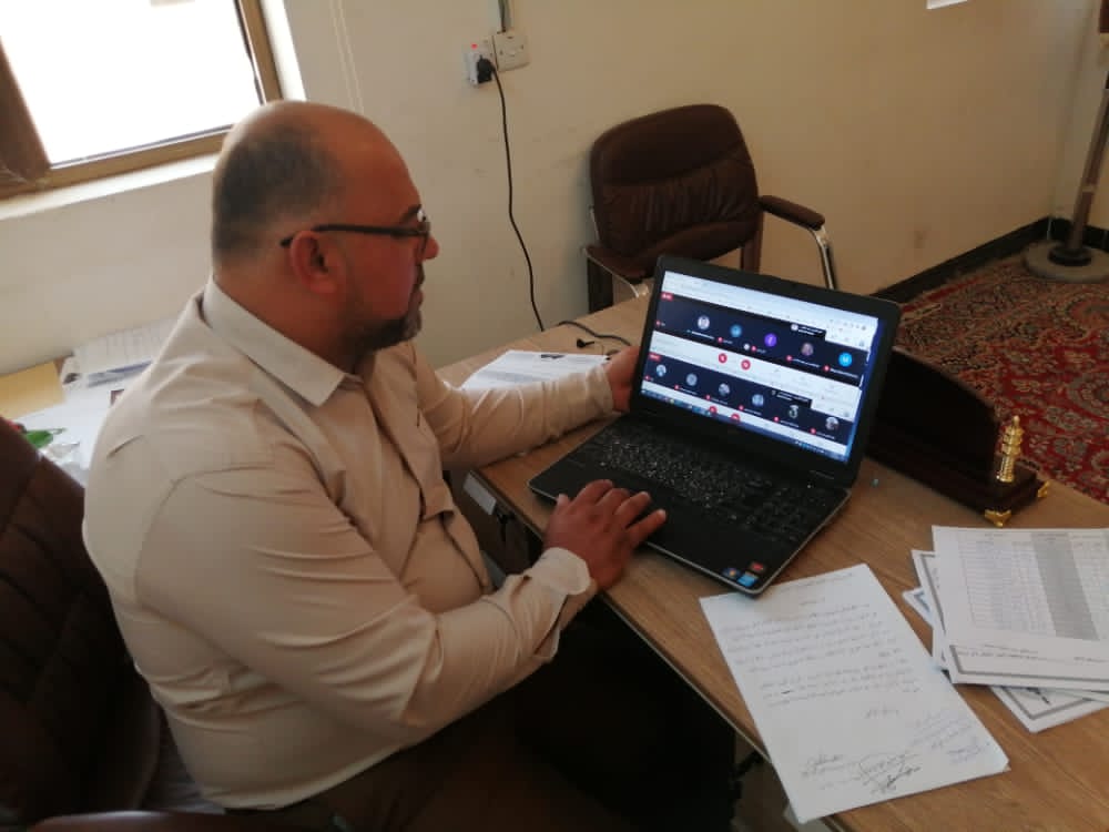 يتابع السيد العميد المحترم سير الامتحانات الالكترونية النهائية للفصل الدراسي الاول بجانب الاساتذة المراقبين واللجنة الالكترونية في داخل الكلية .