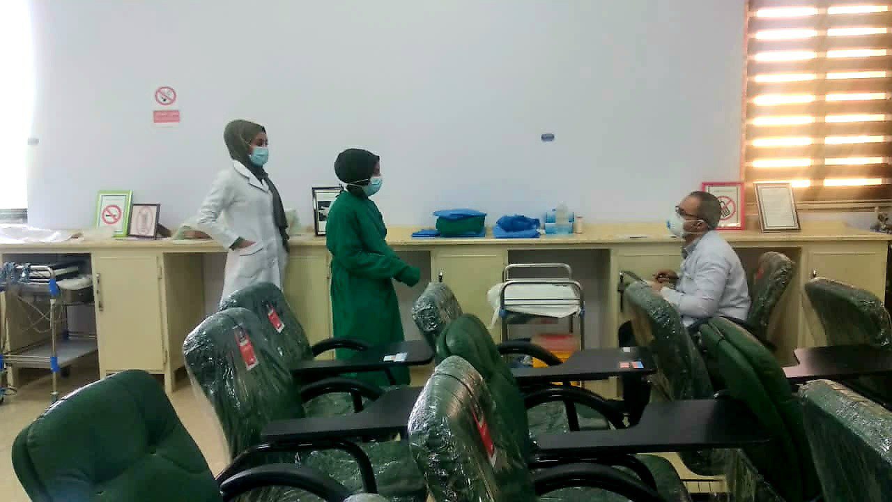 في سياق الانتهاء من الامتحانات العملية والتهيأ للامتحانات الحضورية النظرية... يؤدي طلبة كلية التمريض اخر الامتحانات العملية النهائية للفصل الاول.