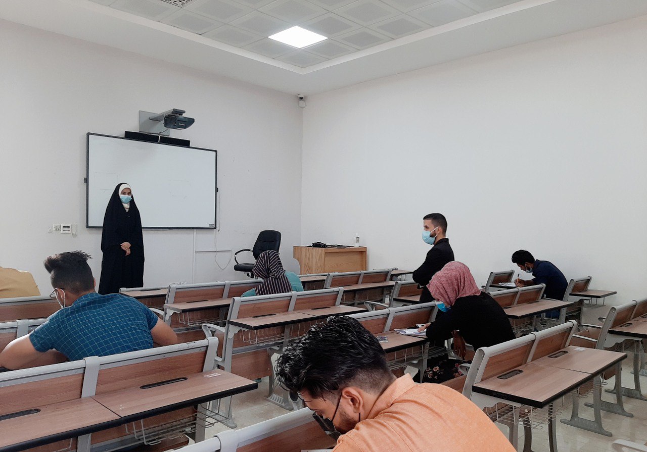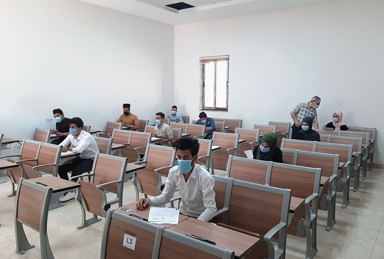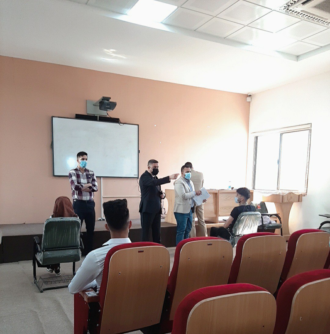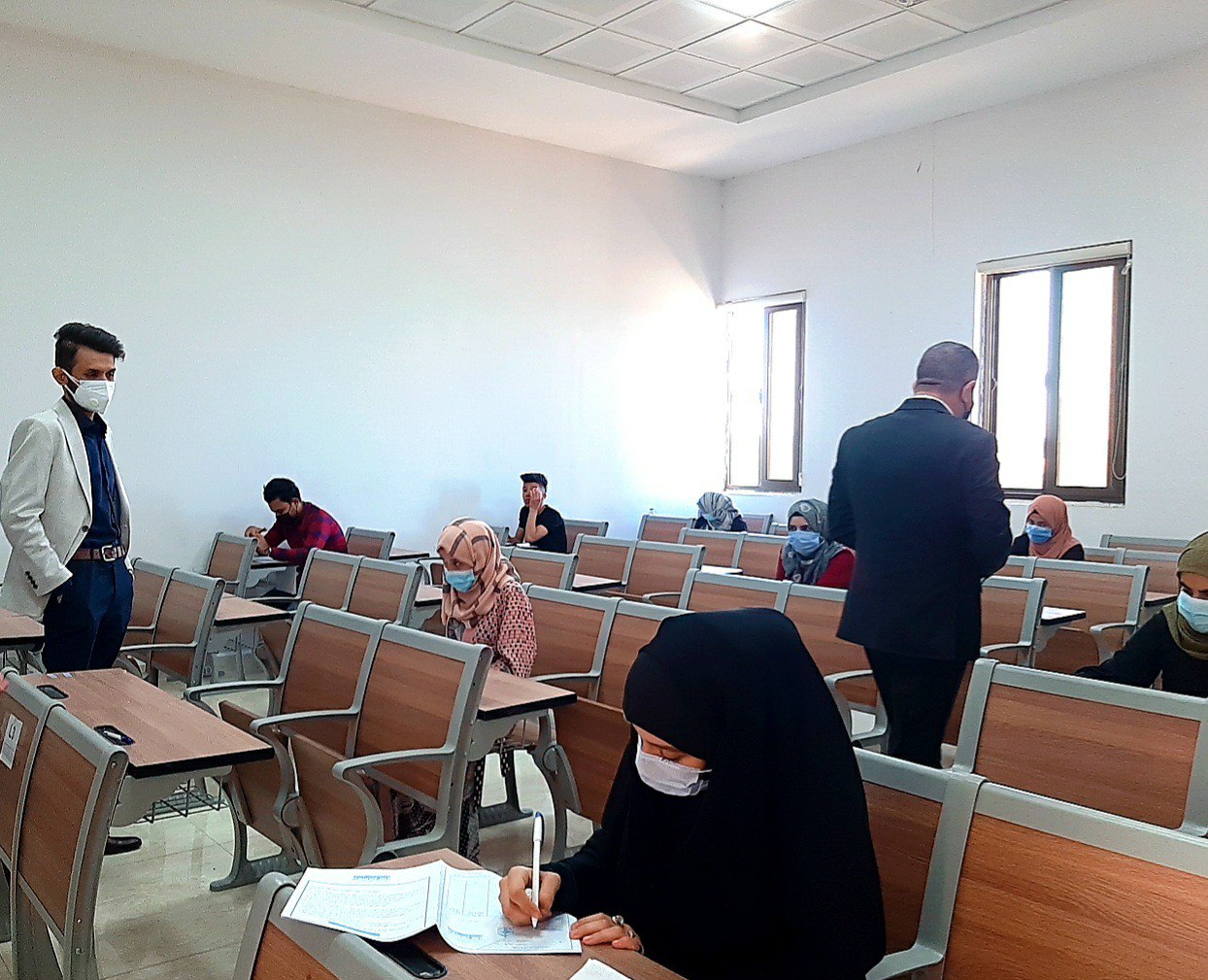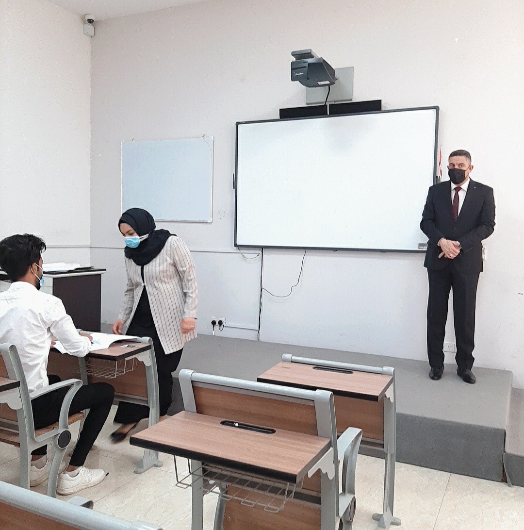 وبمتابعة حثيثة من قبل السيد عميد الكلية ( ا.م.د مرتضى غانم ) على عمليك سير الامتحانات والالتزام باجراءات الوقاية والسلامة .