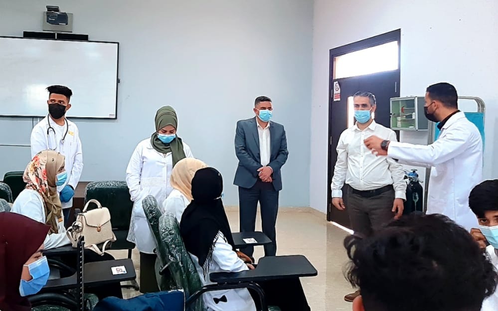 تفقد السيد عميد كلية التمريض المحترم ( أ.م.د. مرتضى غانم عداي ) سير العملية التعليمية للفصل الدراسي الثاني داخل المختبرات العلمية حيث اكد جنابه على ضروره الالتزام بالارشادات والتعليمات الوقائية الصحية اللازمة.