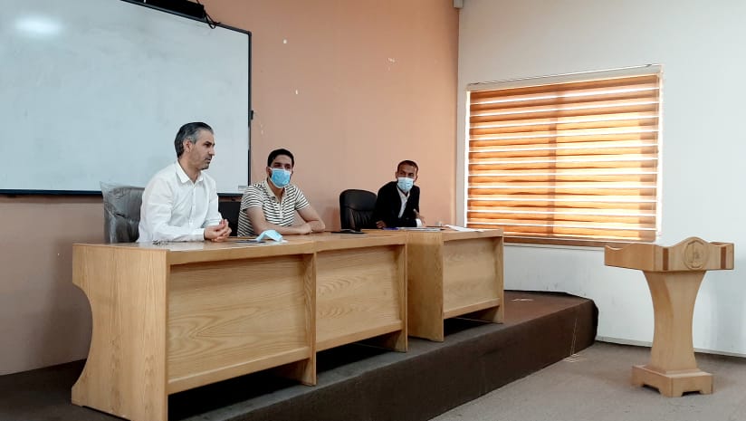 انطلاقا من توجيهات السيد عميد كلية التمريض المحترم وإيمانا برسالة ورؤية الكلية اجتمع اليوم رئيس فرع العلوم التمريضية ( أ.م.د. نسيم سمير صقر) وبعض أعضاء هيئة التدريس لمادة البالغين العملي ومجموعة من طلبة المرحلة الثانية للوقوف على اهم معوقات التدريب السريري التي حدثت خلال الفصل الأول وإيجاد الحلول المناسبة والتي تمكن الطلبة من أداء التدريب بصورة جيدة ومتميزة .هذا ويعتبر اللقاء جزء من مجموعة من اللقاءات التي ستنفذها الكلية ولكافة المراحل مستقبلاً لتذليل جميع العقبات التي تعرقل عملية التعليم للخروج بمخرجات تمريضية جيدة .