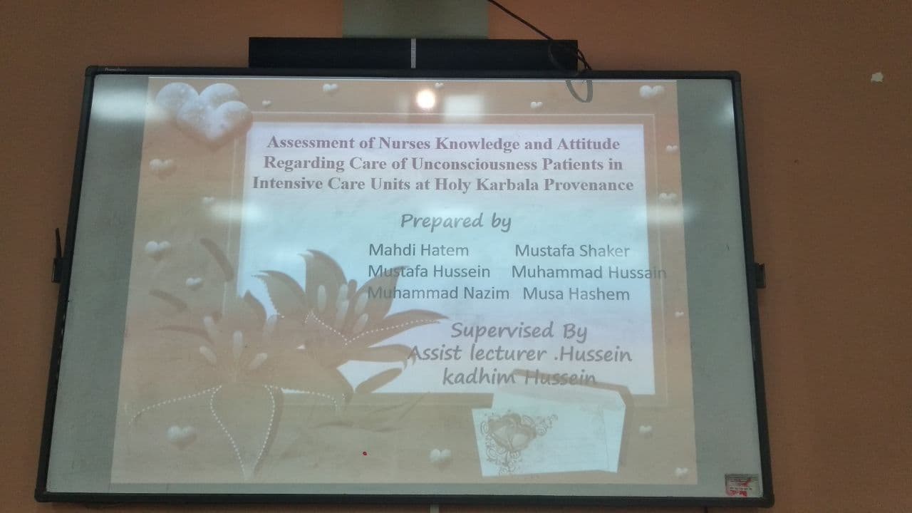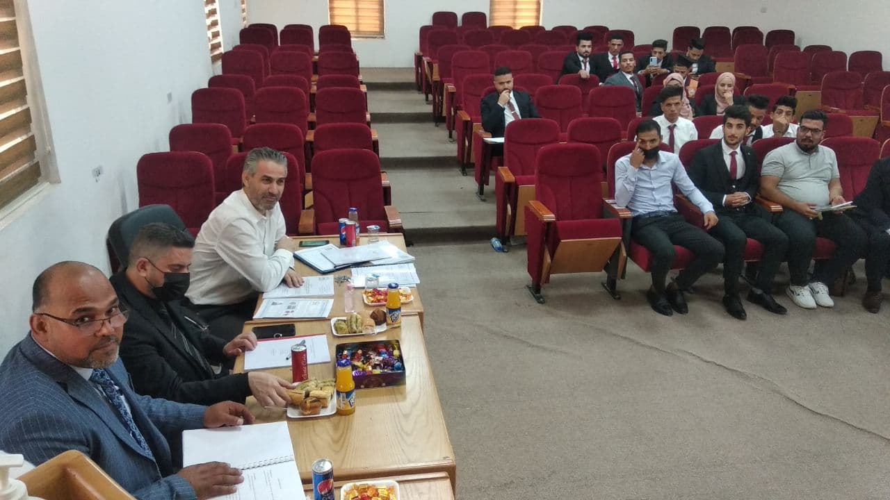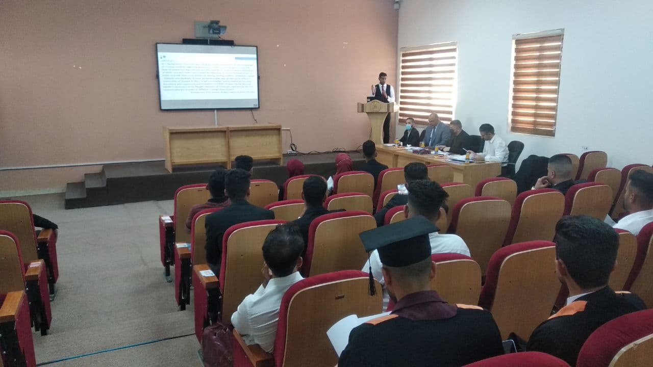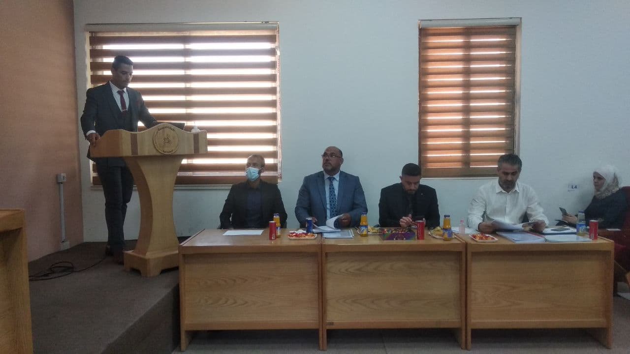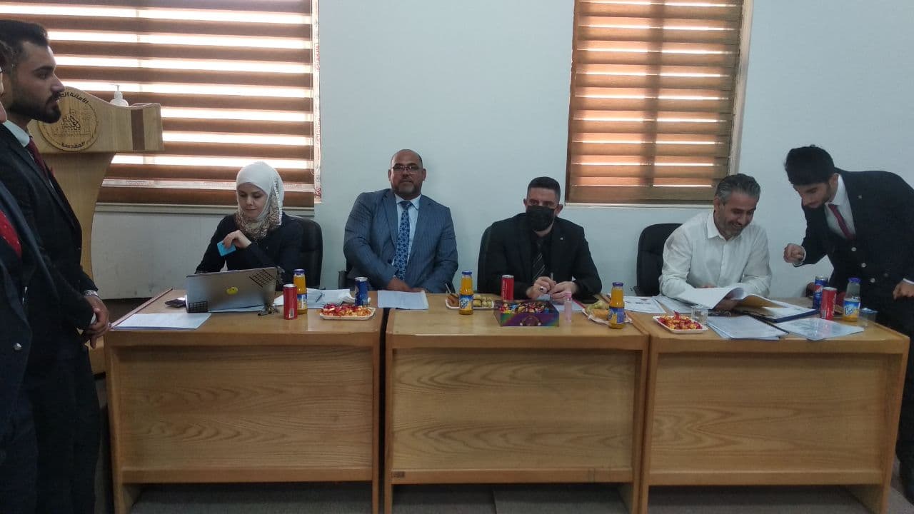 برئاسة السيد عميد كلية التمريض الاستاذ المساعد الدكتور مرتضى غانم الجبوري وعضوية لجنة مناقشة مشاريع التخرج لطلبة كلية التمريض والمؤلفة من أ.م.د نسيم صقر و م.د رهف عقل وم.د حسين المفرجي شرعت اللجنة بمناقشة الطلبة من الذين اكملو متطلبات اكمال البحث