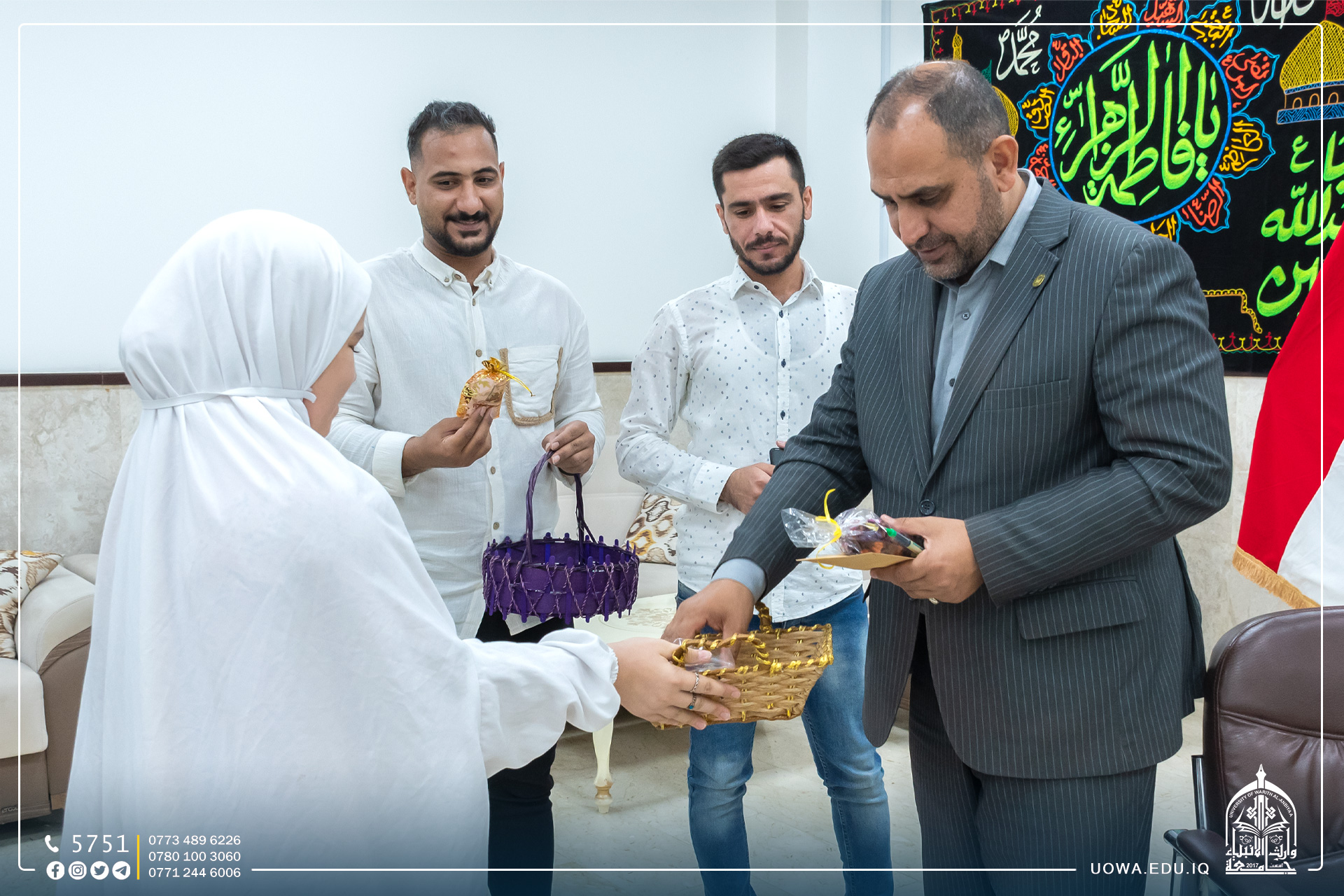 بادر عدد من طلبة جامعة وارث الانبياء(عليه السلام) بتوزيع الحلوى والمنشورات التوعوية بمناسبة حلول ذكرى ولادة الامام علي بن موسى الرضا(عليه السلام).