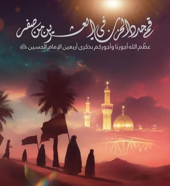 نرفع اسمى آيات العزاء والمواساة الى مقام سيدنا ومولانا الحجة المنتظر(عجل الله فرجه) ومراجعنا العظام والمؤمنين والمؤمنات بذكرى اربعينية سيد الشهداء الامام الحسين(عليه السلام) واهل بيته الكرام واصحابه المنتجبين