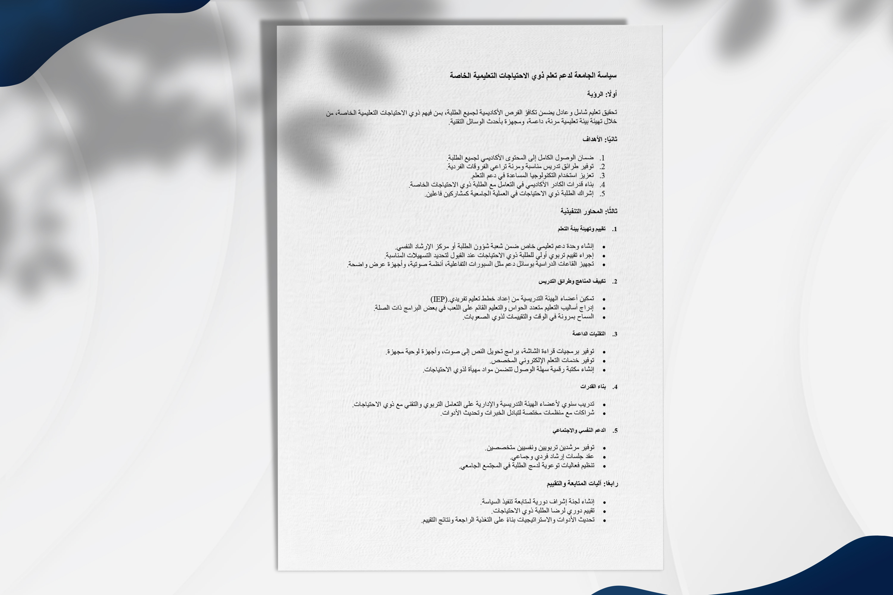 سياسة الجامعة لدعم تعلم ذوي الاحتياجات التعليمية الخاصة