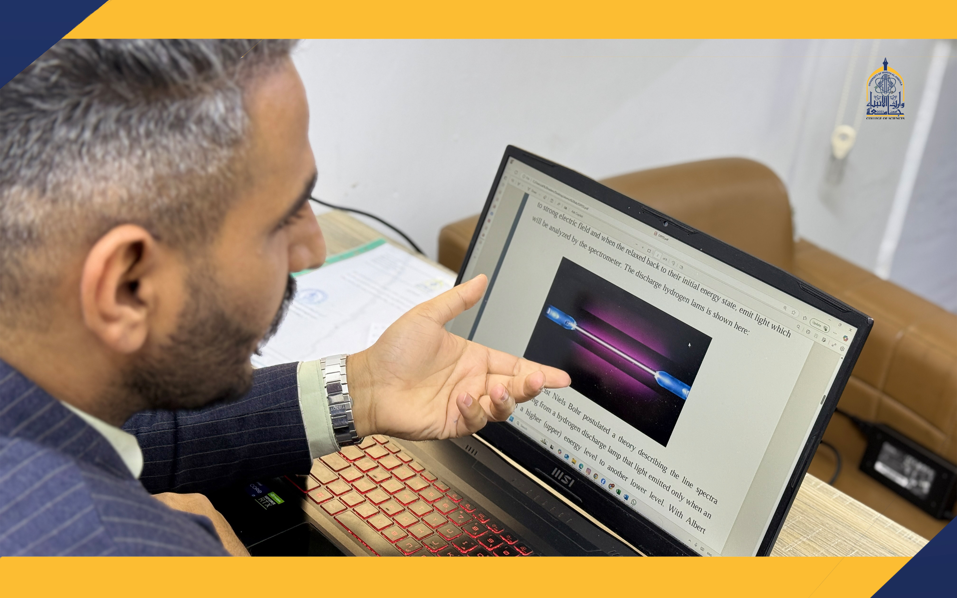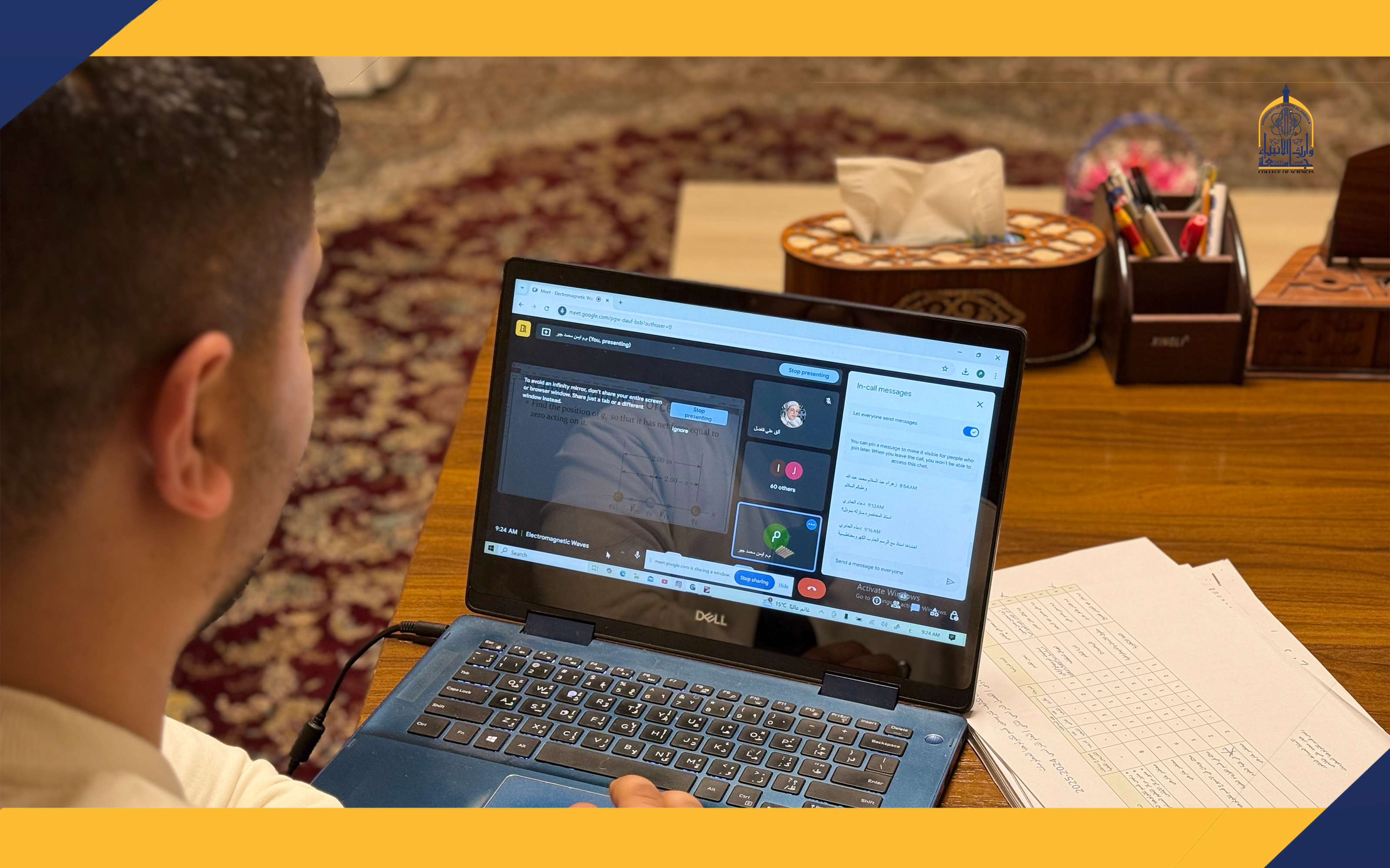 بتوجيه من عميد كلية العلوم الأستاذ المساعد الدكتورة شيماء حسين نوفل المحترمة، قررت كلية العلوم في جامعة وارث الأنبياء (عليه السلام) تقديم محاضرات إلكترونية لطلبة قسم الفيزياء الطبية وقسم تكنولوجيا المعلومات. جاء هذا القرار بسبب سوء الأحوال الجوية وصعوبة حضور الطلبة إلى الجامعة.