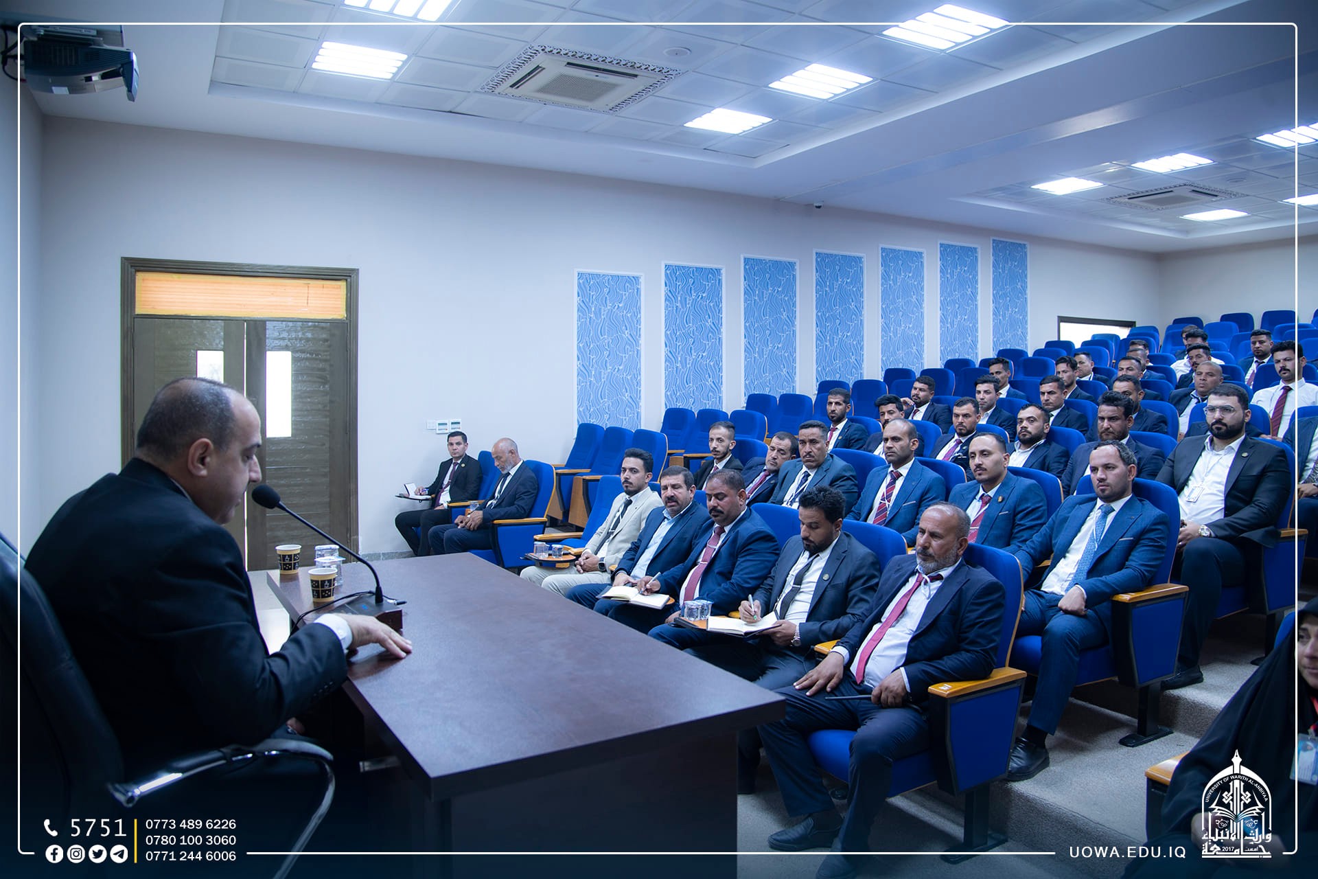 انطلاقاً من حرص رئاسة الجامعة على عقد اللقاءات الدورية مع ملاكاتها الإدارية والتدريسية للوقوف على احتياجاتهم وحل مشاكلهم، اجتمع السيد رئيس الجامعة الاستاذ الدكتور ابراهيم الحياوي والاستاذ الدكتور نوفل الاعرجي، مع ملاكات قسم المتابعة باعتبارهم الواجهة الاولى لزوار الجامعة ، مؤكداً على بذل الجهود اللازمة التي تسهم في حفظ سلامة وأمن الجامعة وطلبتها والتاكيد على التعامل الحَسِن مع طلبتنا الاعزاء.