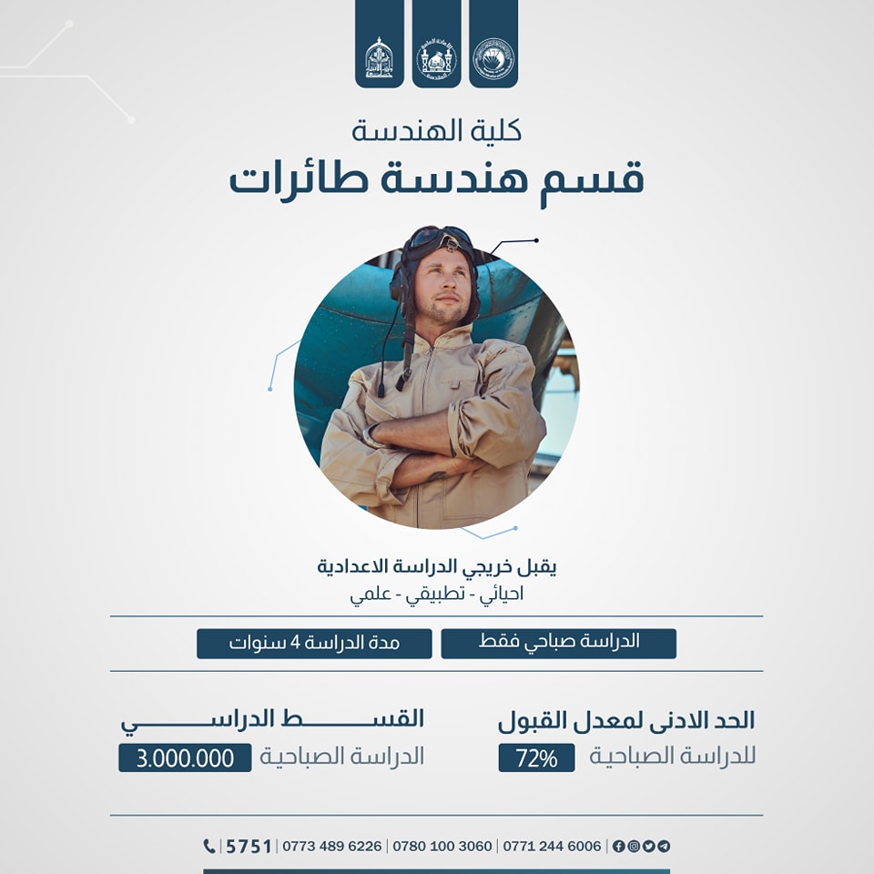 الطلبة الاعزاء الراغبين بالتقديم على كلية الهندسة في جامعة وارث الانبياء(عليه السلام)