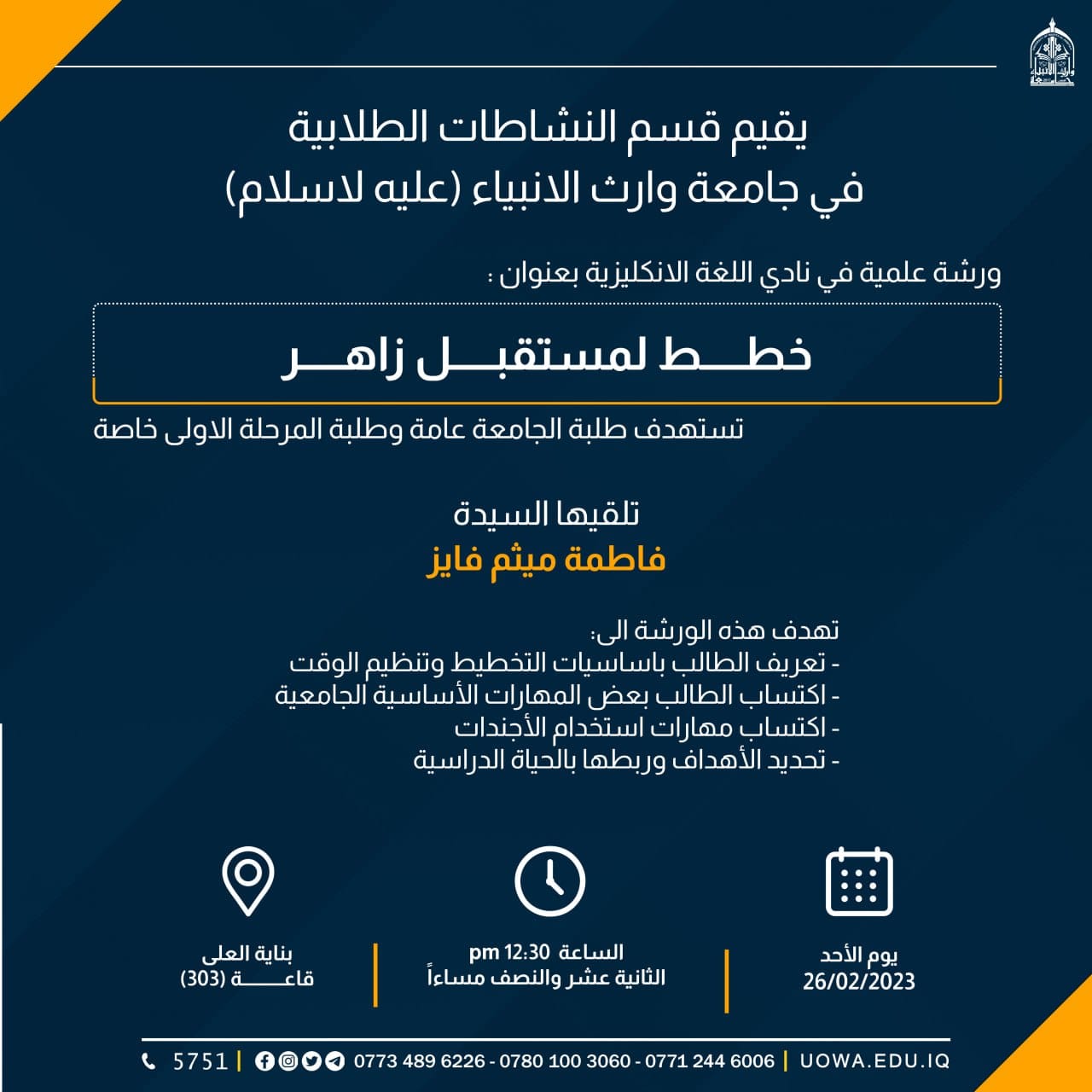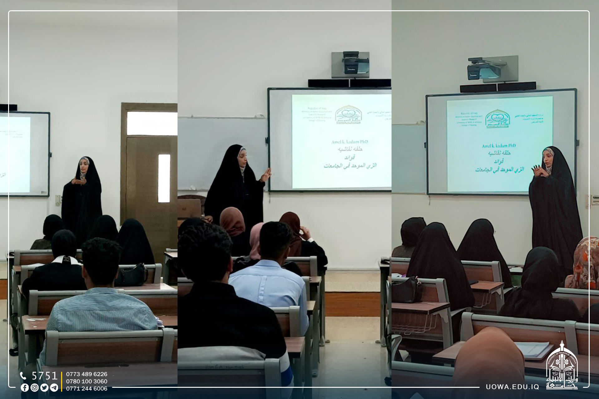 ندوة علمية توعوية بعنوان(تصويب الاخطاء اللغوية الشائعة على مواقع التواصل الاجتماعي)، أقامتها شعبة الارشاد النفسي والتوجيه التربوي في جامعة وارث الانبياء(عليه السلام) وبالتعاون مع قسم الشؤون العلمية