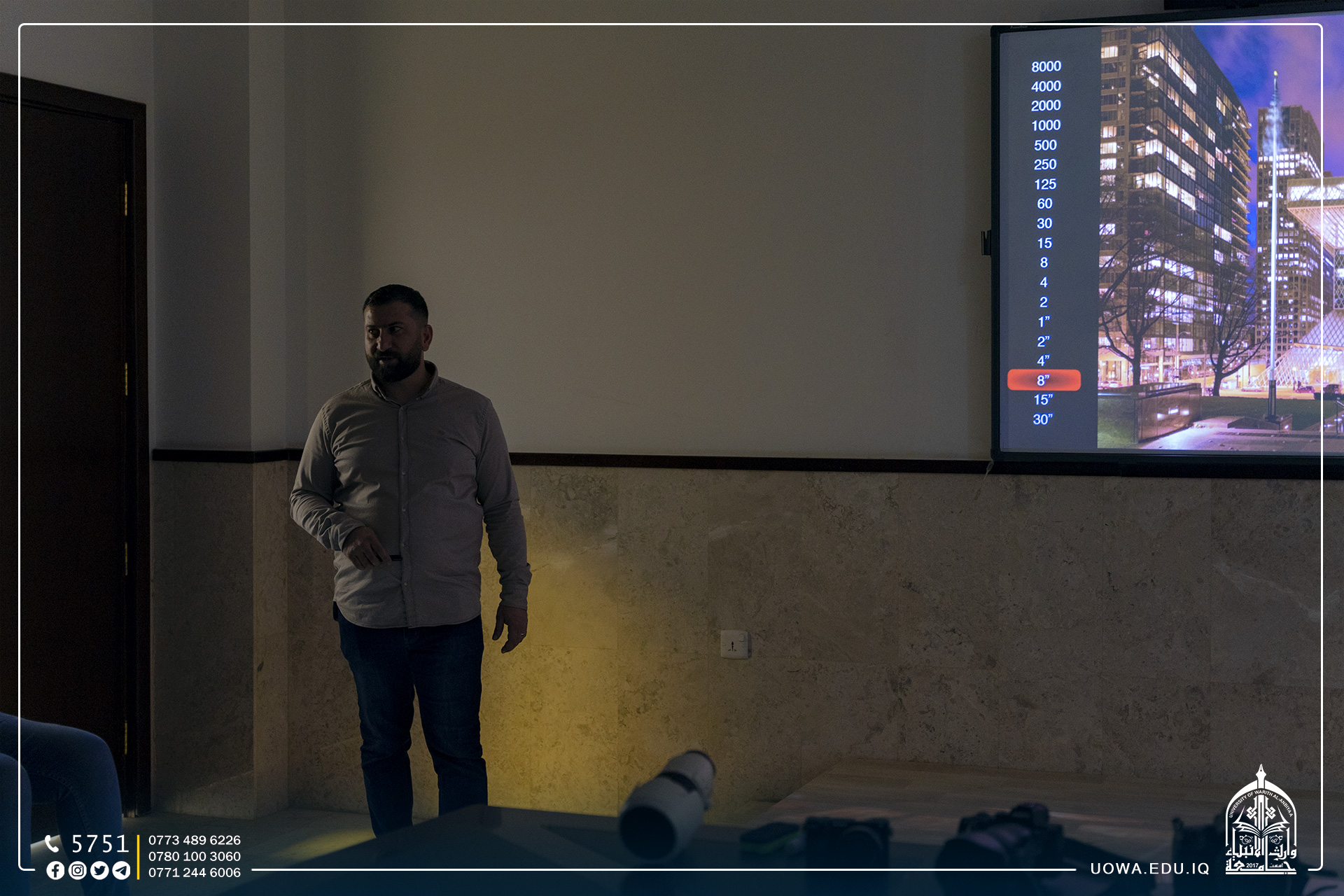 أقام قسم التعليم المستمر في جامعة وارث الانبياء (عليه السلام)  وبالتعاون مع مركز الحاسبة الالكترونية دورة تدريبية بعنوان " التصوير الفوتوغرافي" قدمها المصور المحترف (ضياء عزيز الكلكاوي).