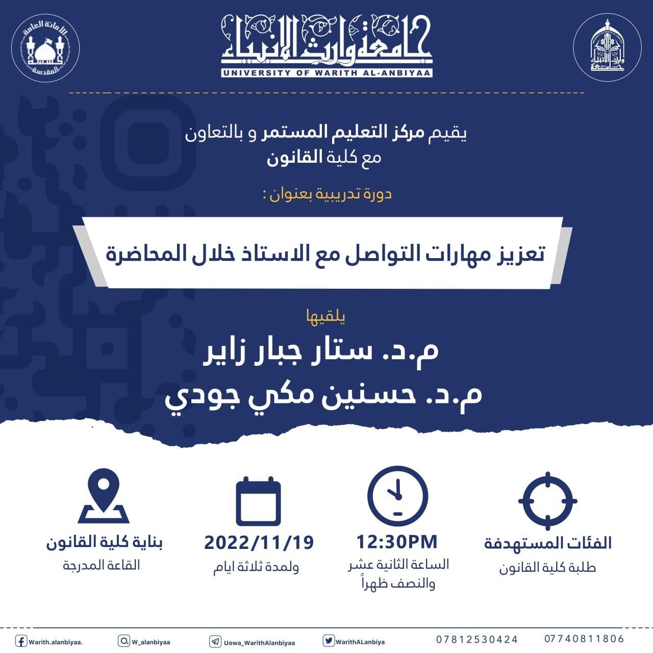 أقام قسم الشؤون العلمية في جامعة وارث الأنبياء (عليه السلام) اليوم الاثنين 24-10-2022