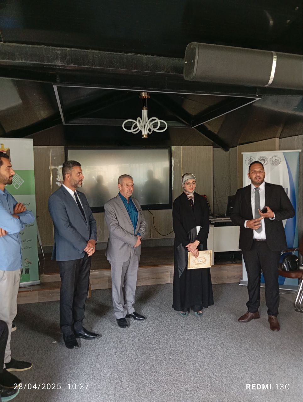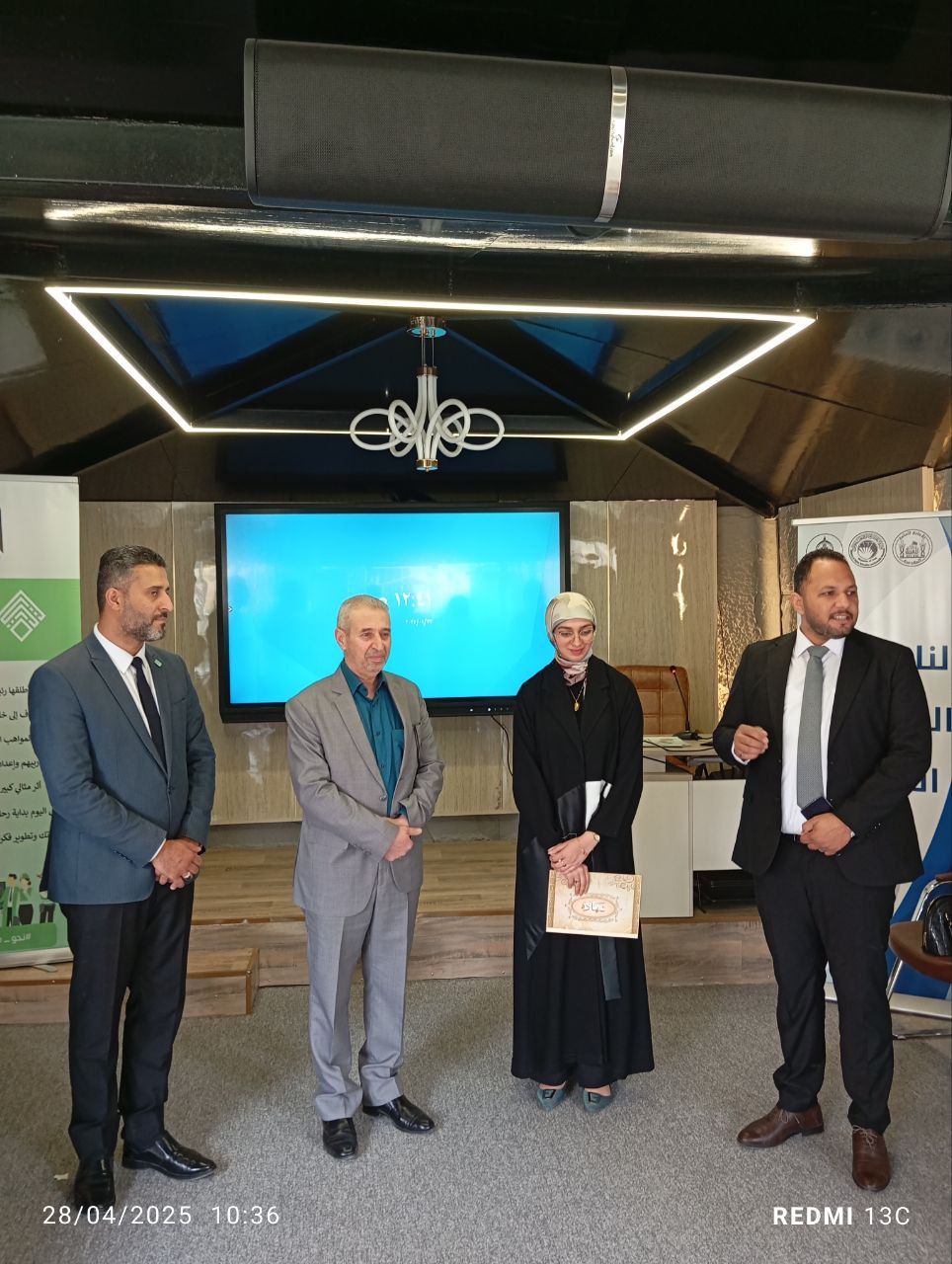 In a gesture that reflects the spirit of support and collaboration among the university’s colleges, the Dean of the College of Islamic Sciences, Dr. Talal Faeq Al-Kamali, honored Hajer Hussein, a student from the College of Engineering, in recognition of her first-place achievement in the “A Nation That Reads” competition at the level of Al-Warith Al-Anbiyaa University.