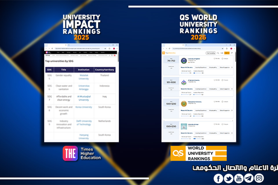 In parallel, Iraq demonstrated a strong presence in the Times Higher Education University Impact Rankings 2025, with 88 Iraqi universities participating. This ranking assesses the contribution and impact of higher education institutions in achieving the United Nations Sustainable Development Goals (SDGs) through indicators covering research, institutional governance, community engagement, and education.