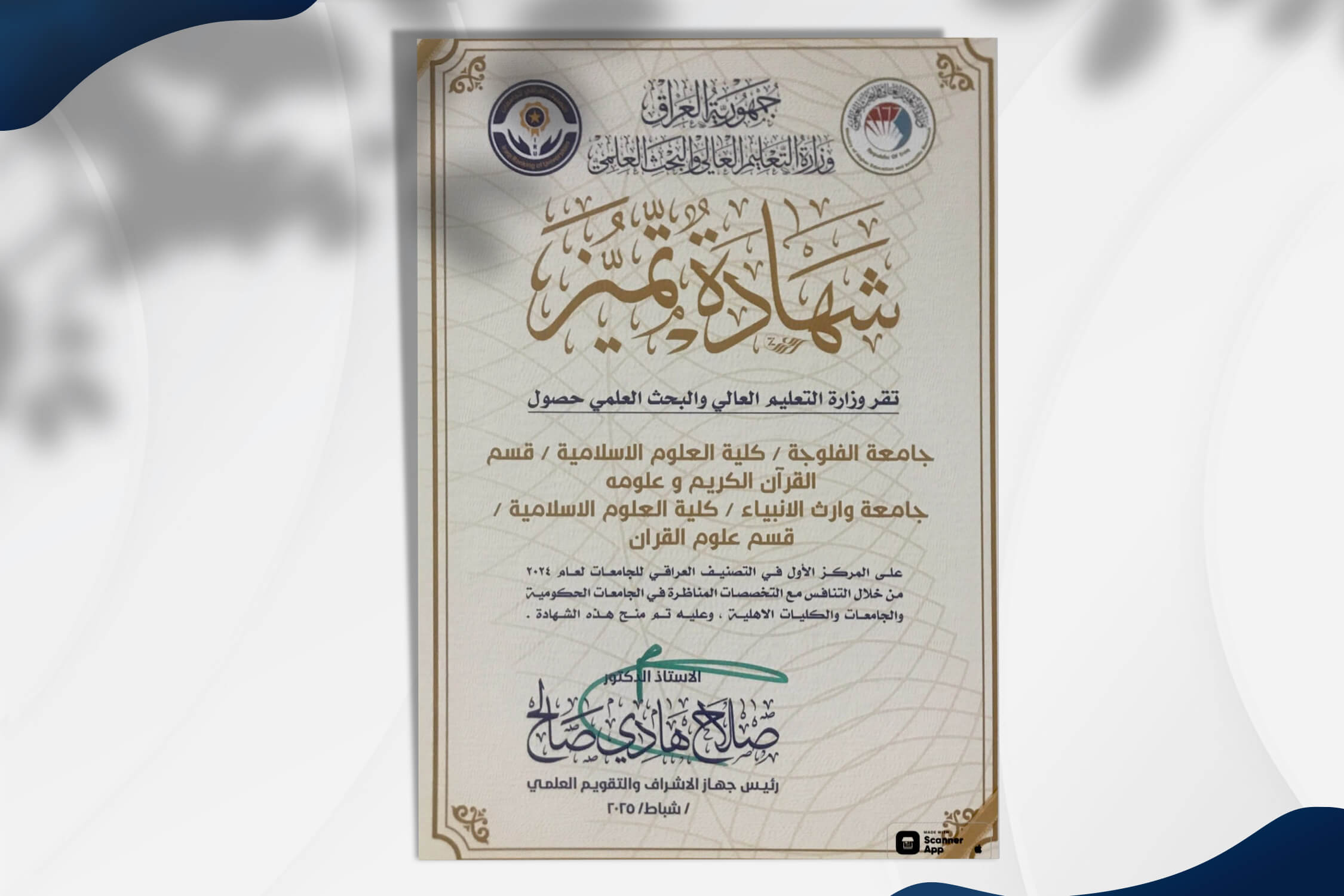 The Governor of Karbala, Nassif Jassim Al-Khattabi, honored Prof. Dr. Waqid Al-Moussawi, Scientific Assistant to the President of Warith Al-Anbiyaa University, in recognition of his selection among the top 2% of researchers worldwide.