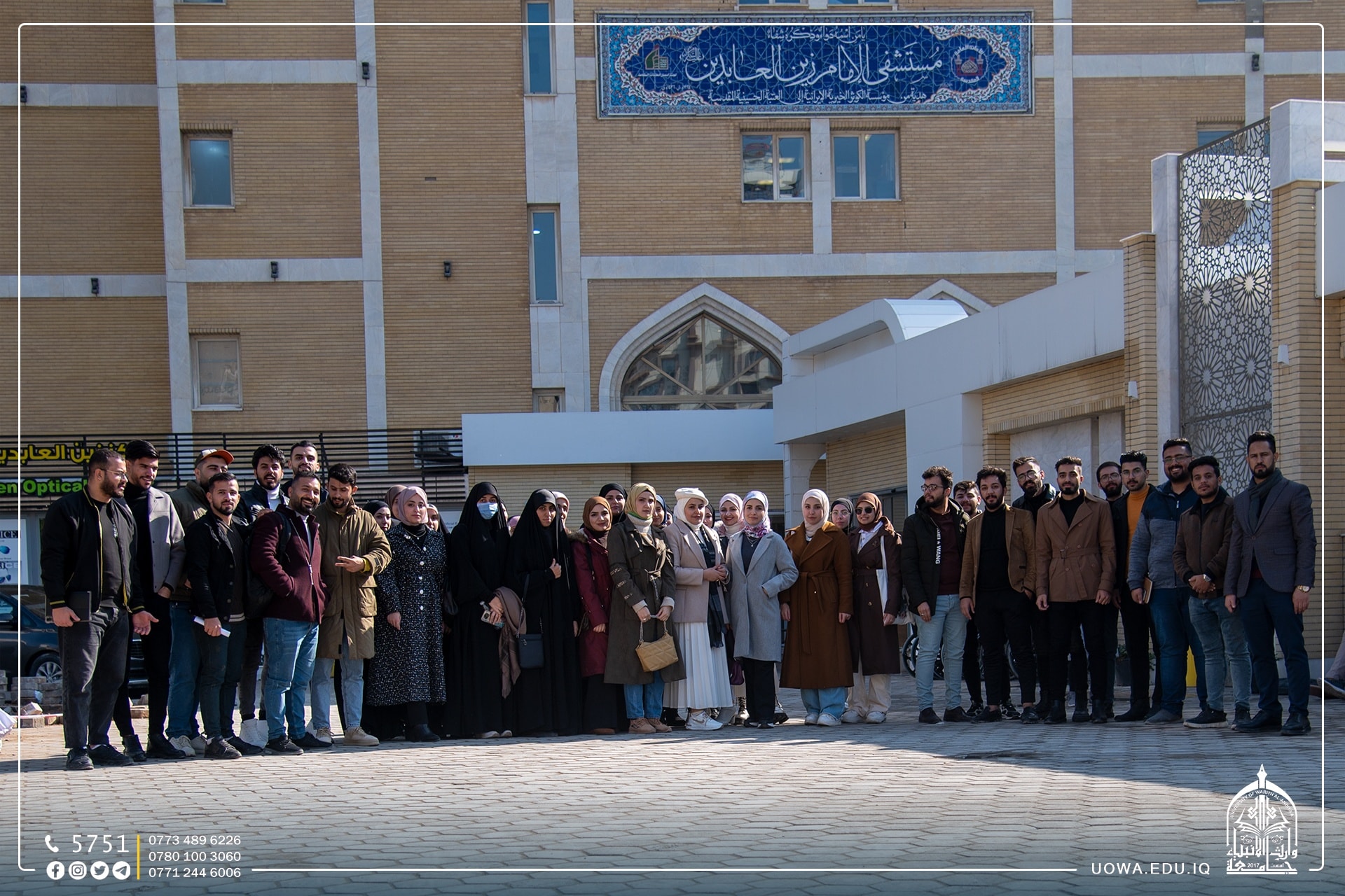 The Department of Biomedical Engineering at Warith Al-Anbiyaa University organized a scientific visit to Imam Zain Al-Abidin Hospital accompanied by the professors of the department to see the medical devices and equipment in the hospital departments and to identify the diagnostic medical devices used.