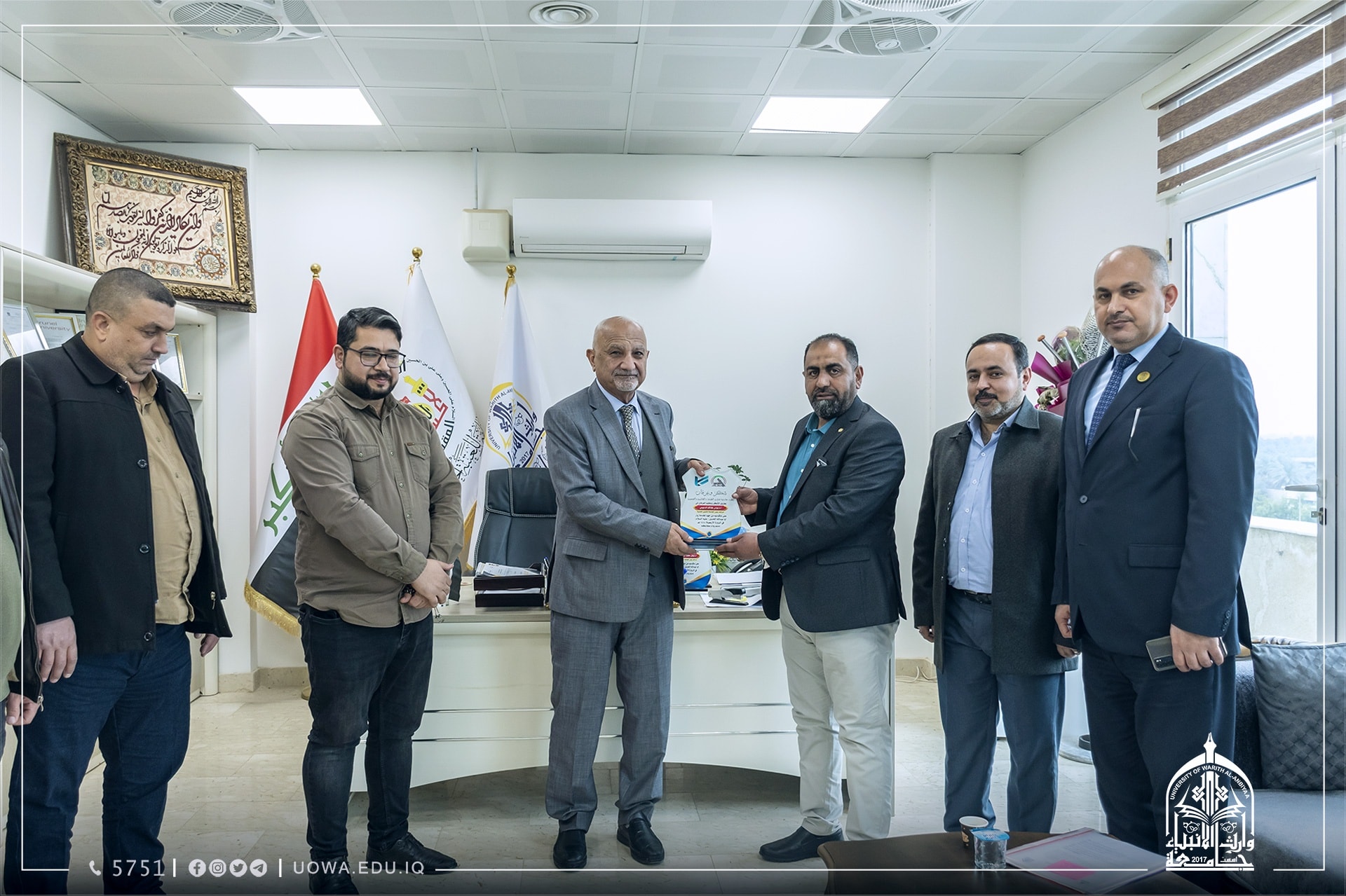 The Clinic of the Popular Mobilization Authority, Kirkuk Branch, honors the presidency of Warith Al-Anbiyaa University. In appreciation of their efforts in serving the visitors of the Arbaeenia Imam Hussein (peace be upon him) every year, the Clinic of the Popular Mobilization Committee / Kirkuk Branch honored the University presidency of Warith Al-Anbiyaa as well as the Deanship of the Nursing College. The visiting delegation presented shields of thanks and gratitude for the facilities provided by the university every year through the installation of the mobile hospital inside the university to serve the visitors of Arbaeenia Imam Hussein in addition to volunteers from professors and students of the College of Nursing.